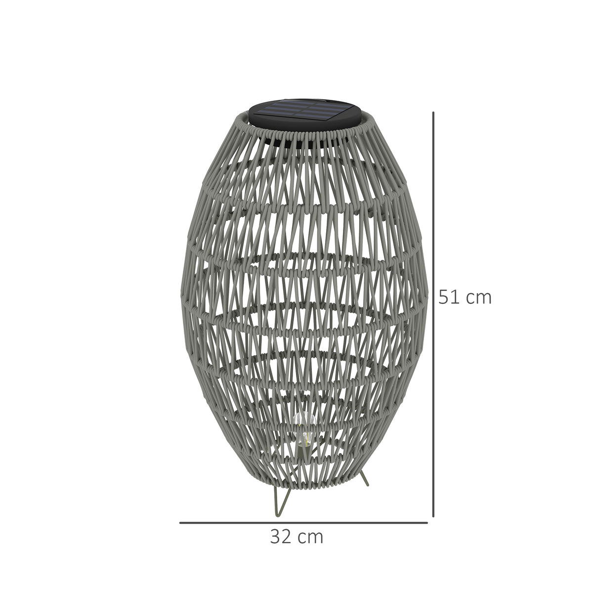 Outsunny Rattan Solar Lamp, Garden Solar Lantern with Auto On/Off Light, IP44 Waterproof, Decorative Outdoor Rattan Lamp for Porch, Pathway, Grey - Grey