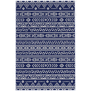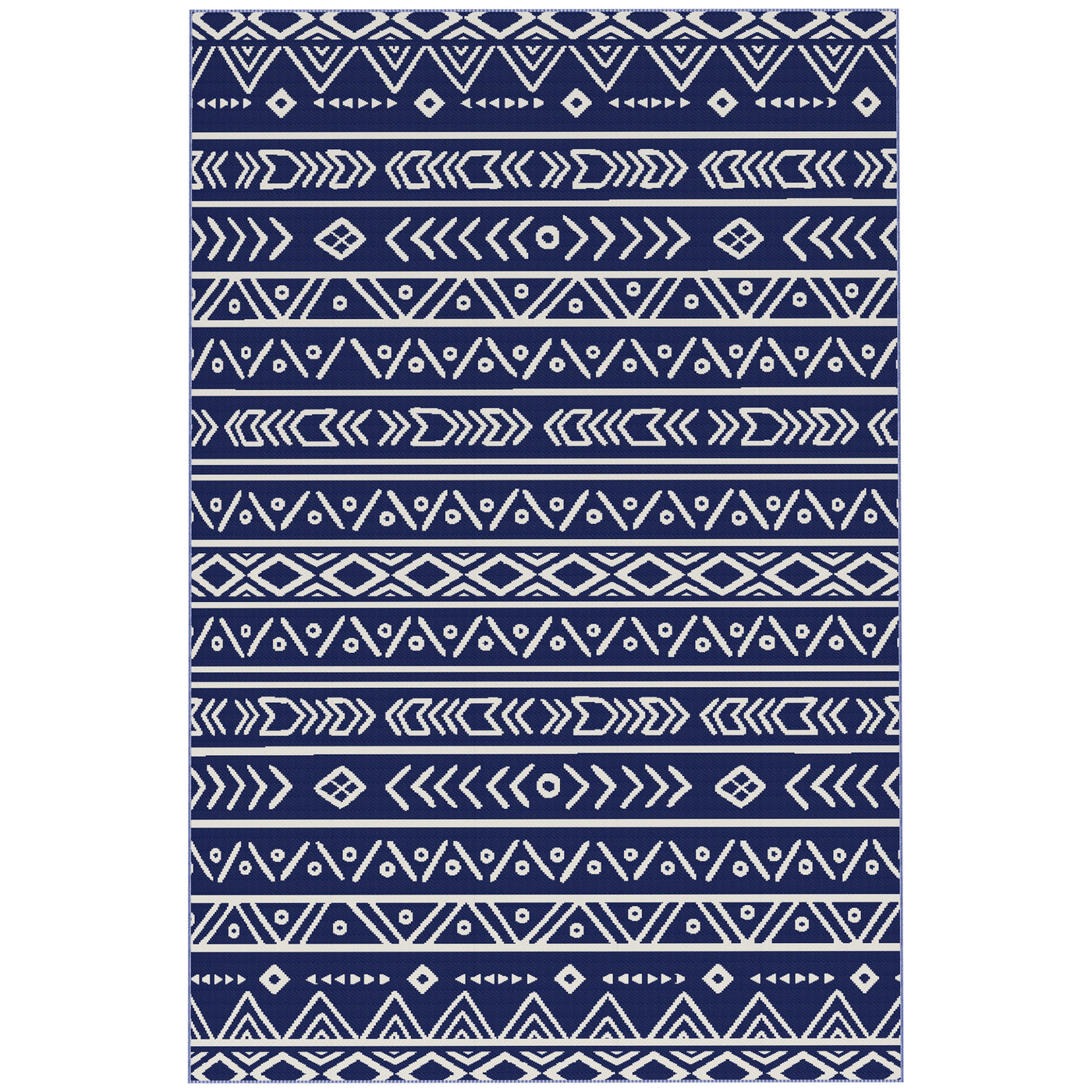 Outsunny Reversible Outdoor Rug with Carry Bag, Waterproof Plastic Straw Mat for Garden, Deck, RV, Picnic, Beach, Camping, 182 x 274cm, Dark Blue and White - Blue, White Geometric