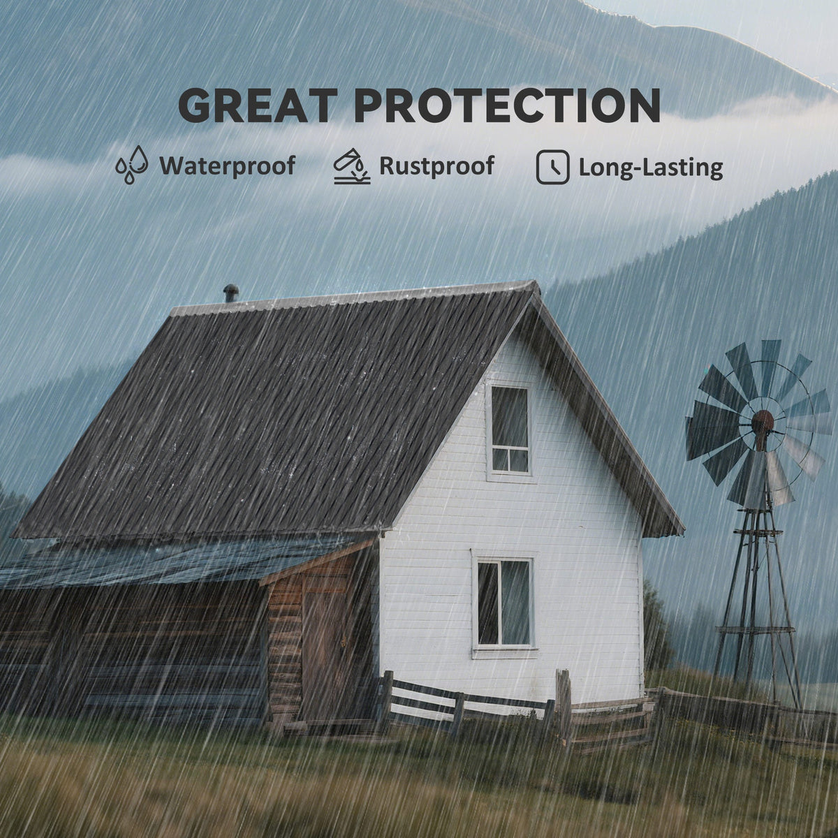 Outsunny Set of 12 Corrugated Steel Roof Sheet Panels - Black - Black