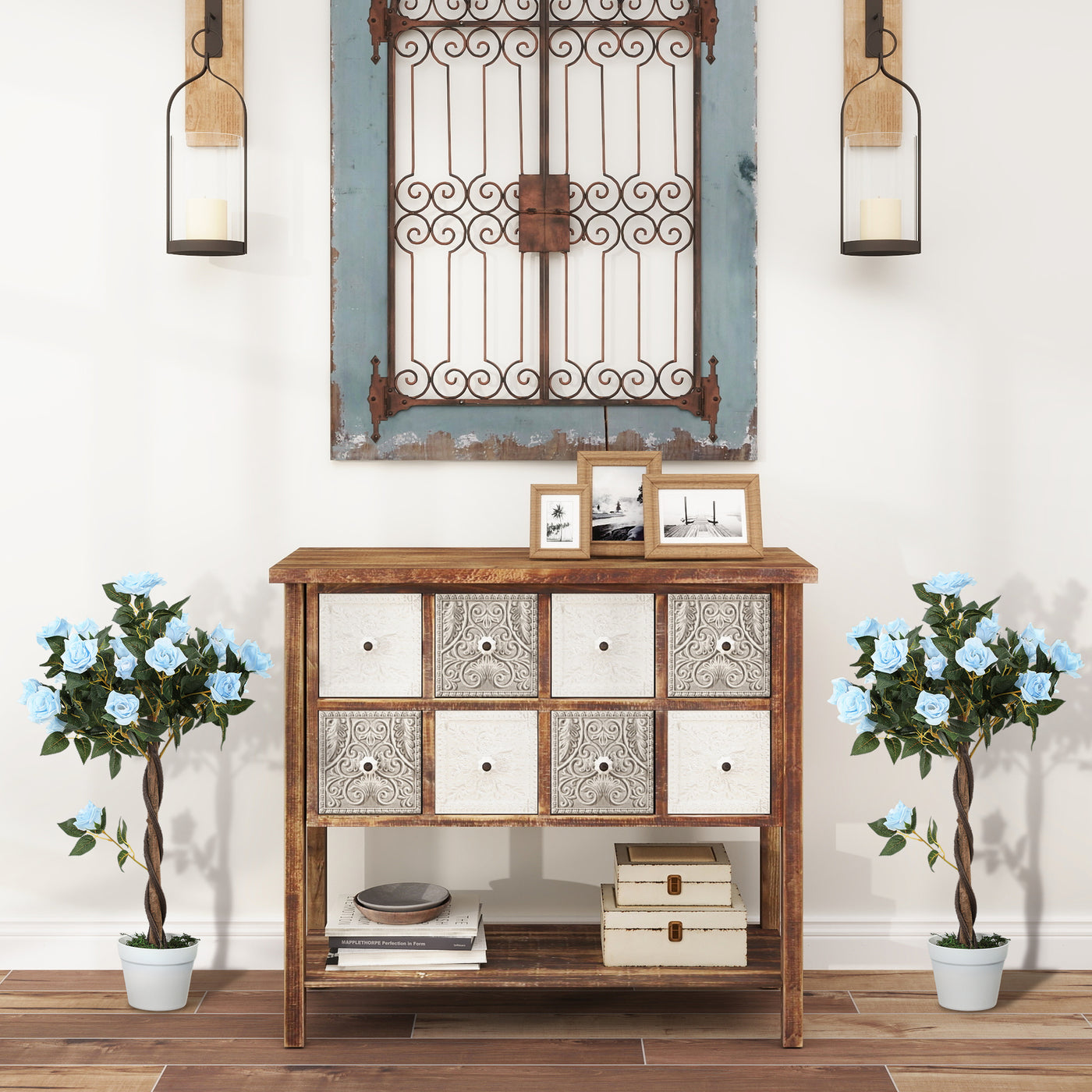 Outsunny Set of 2 Artificial Plants White Rose Floral in Pot, Fake Plants for Home Indoor Decor, 90cm, Light Blue - Light Blue, Green