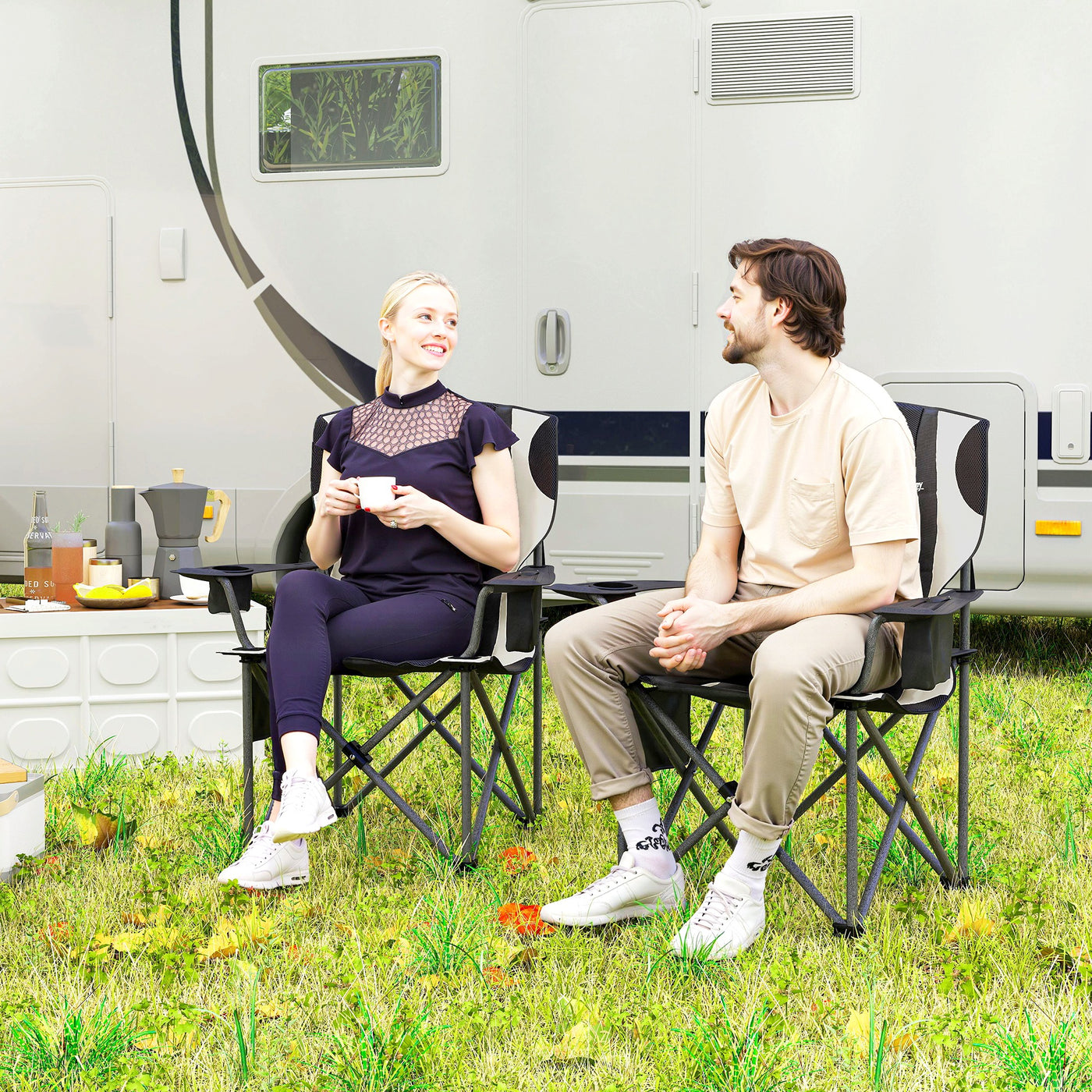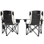 Outsunny Set of 2 Folding Camping Chairs, Padded Camping Chairs with Adjustable Armrests, Portable & Lightweight Folding Camp Chair with Cooler Bag, Cup Holder and Side Pockets, Black - Black