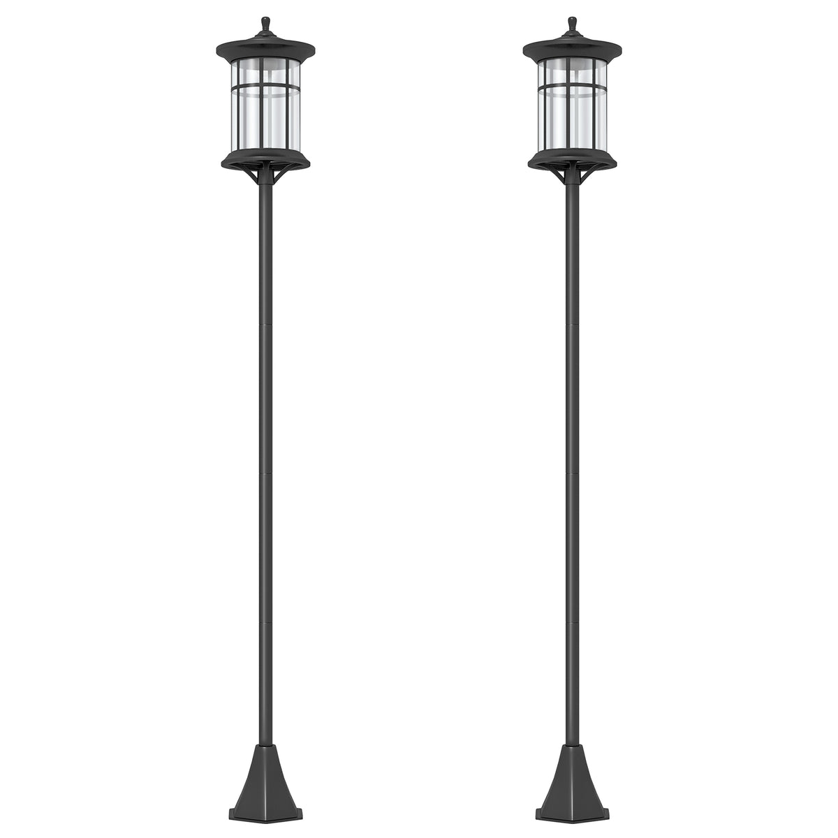 Lighting when the sun goes down - in traditional form with this set of two Outsunny post lights. Stainless steel structure of both, with IP44 rating for safety outdoors. The traditional look brings a bold and beautiful look to your outdoors. Each are fitted with a solar-powered: charges with eight hours of sunlight, and provides six hours of illumination. Both solar post lights come with bottom stakes to insert into the ground.