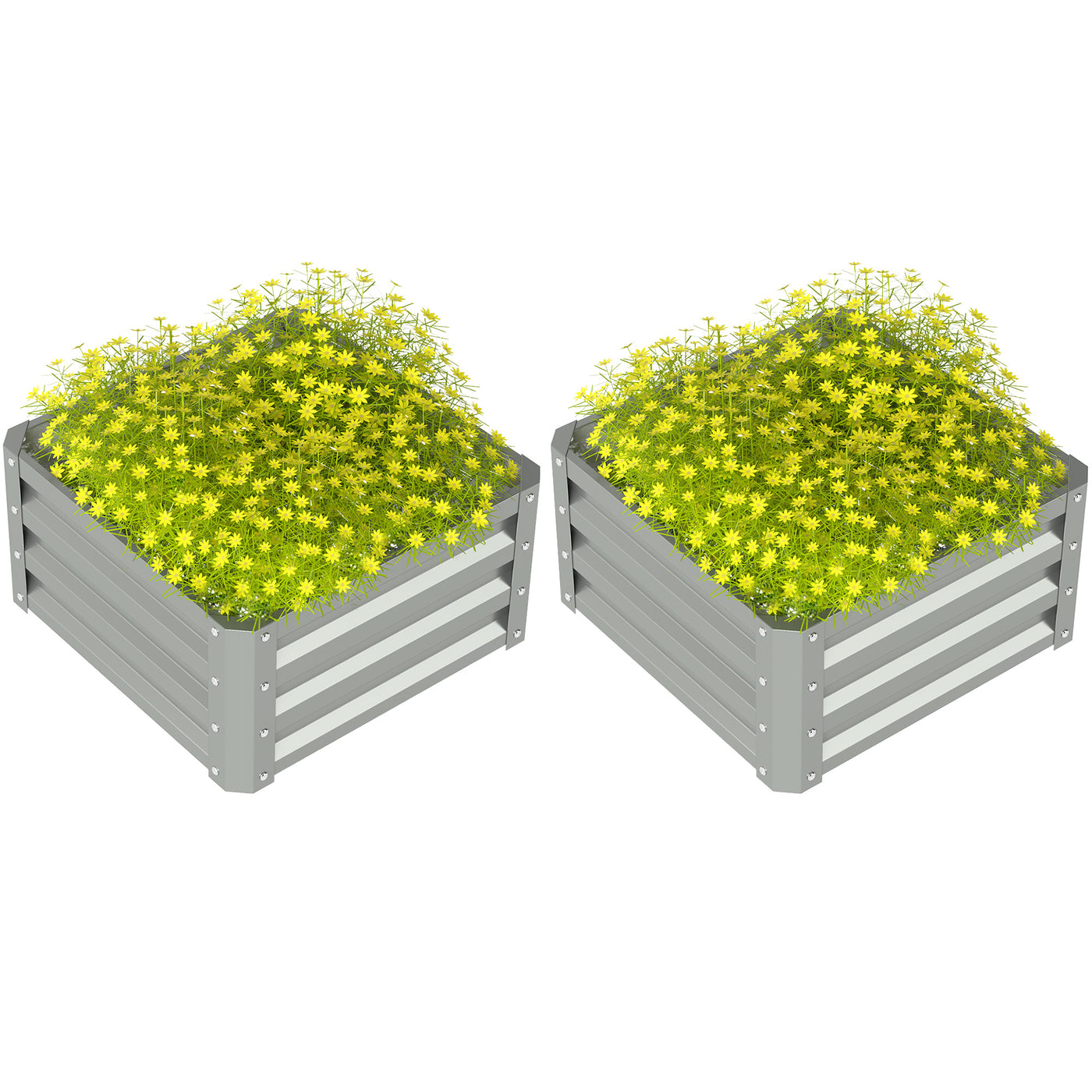Outsunny Set of Two 60 x 60cm Steel Planter Boxes - Light Grey - Light Grey