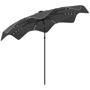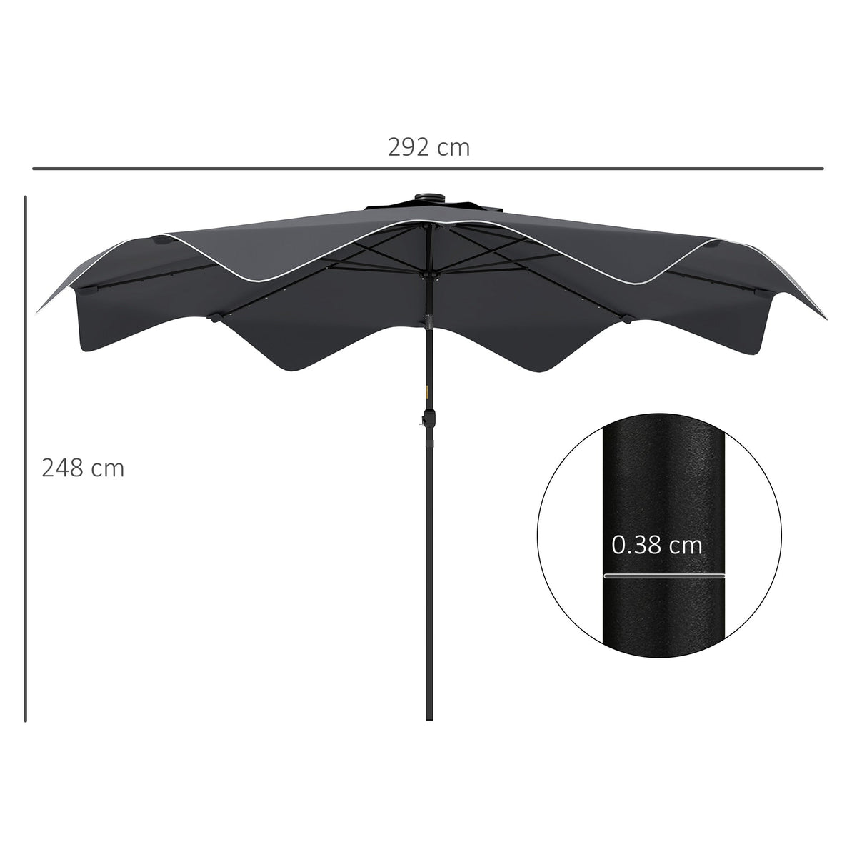 Outsunny Solar Patio Umbrella with LED and Tilt, Outdoor Market Table Umbrella Parasol with Crank, 3 x 3 (m), Dark Grey - Dark Grey