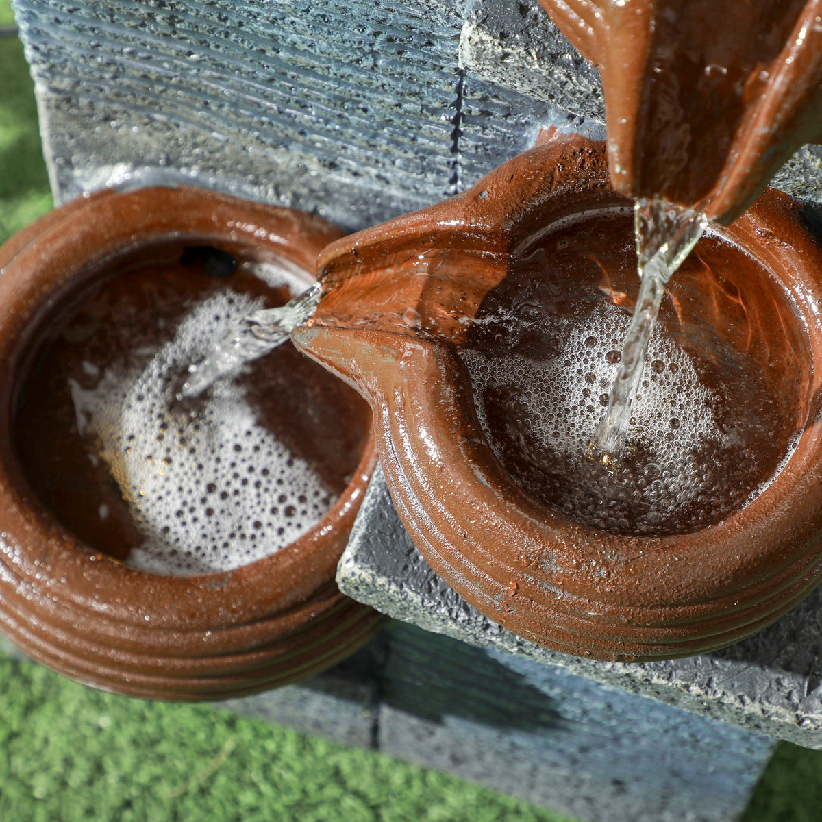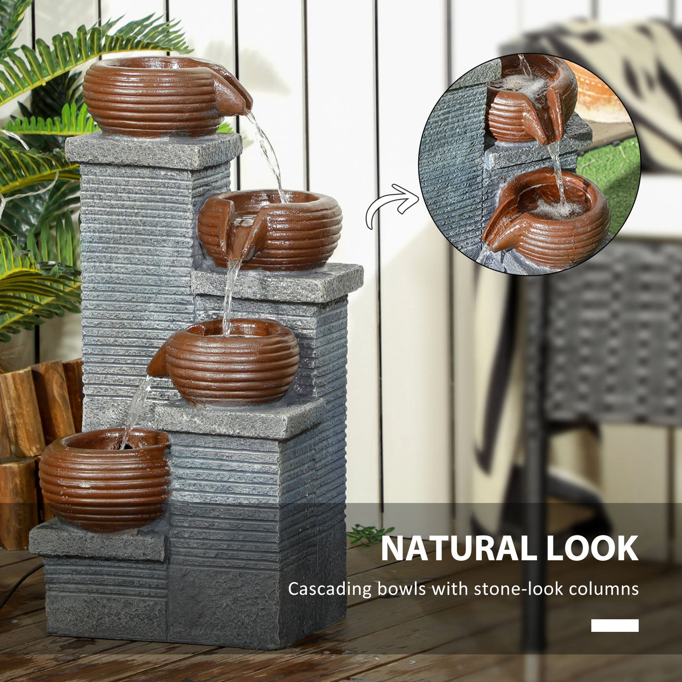 Outsunny Solar Powered Garden Water Feature with LED Lights and Pump, 4 Tier Cascading Water Fountain for Indoor/Outdoor, Bowls Waterfall Ornament, 58cm Height - Grey