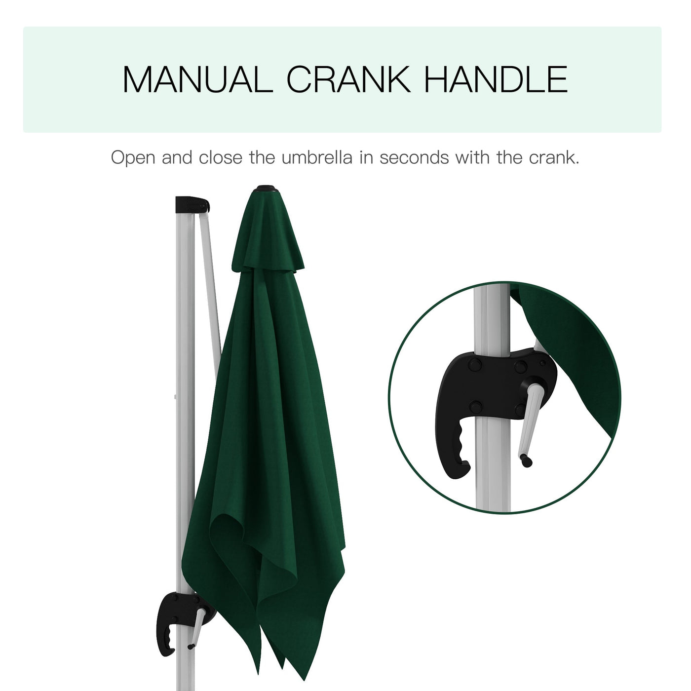 Outsunny Square Cantilever Garden Parasol, with Five-Position Canopy - Green - Green