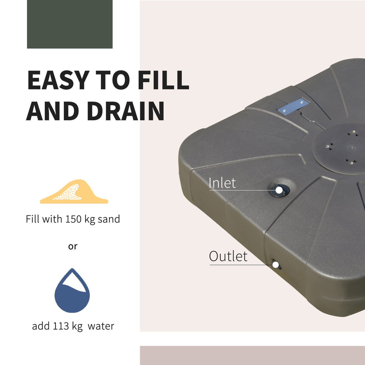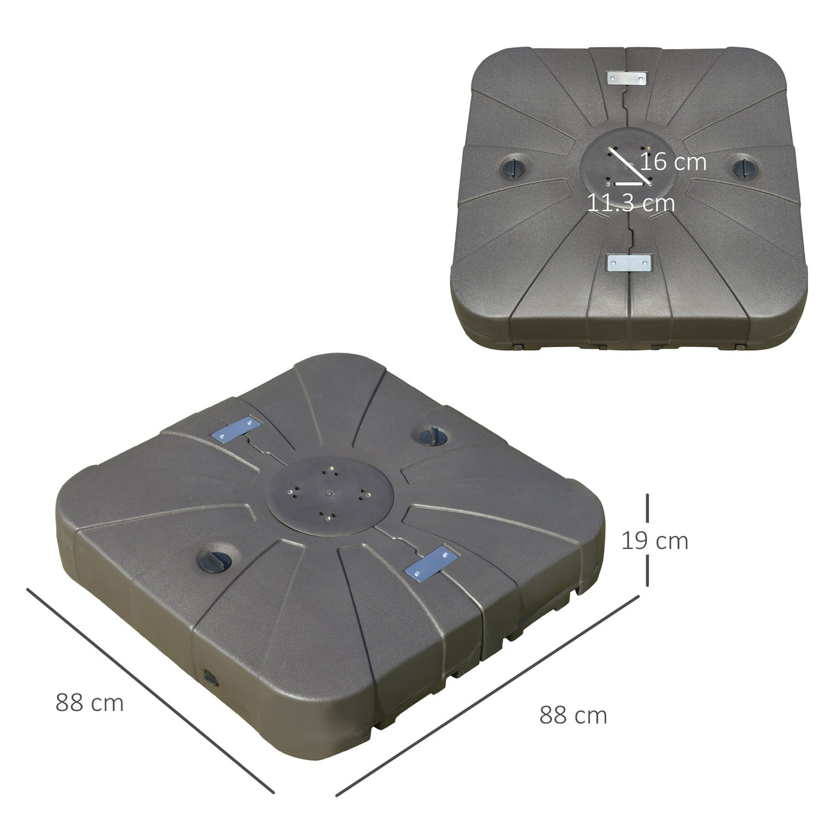 Outsunny Square Cantilever Patio Parasol Base Water or Sand Filled Stand with Wheels Heavy-Duty, Coffee - Coffee Brown