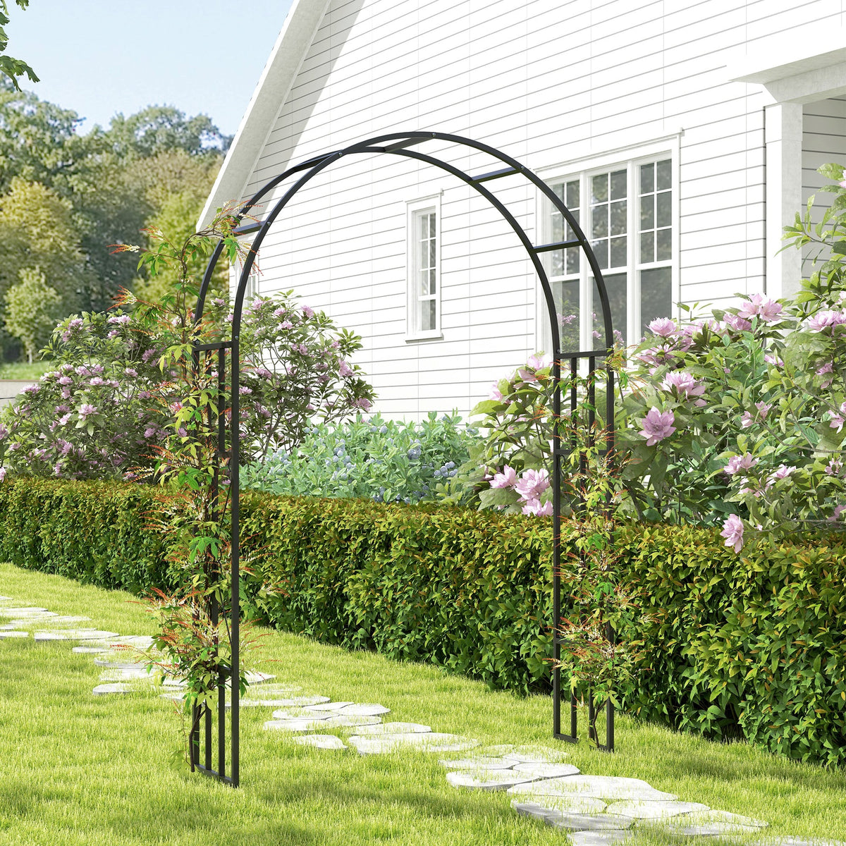 Transform your garden into a picturesque paradise with the Outsunny metal garden arch. Crafted from rust-resistant, powder-coated steel, it's designed to endure the elements. Secure it easily with four ground stakes in the ground or use the versatile foot pads for hard surfaces. A charming rose arch or a stunning wedding archway, it's great choice for your climbing plants.
