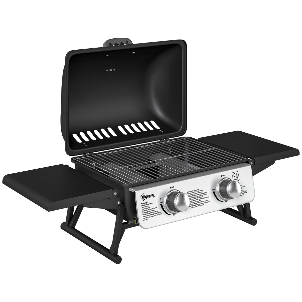 Get friends together and enjoy delicious BBQ food with this Outsunny gas grill. It features two burners controlled by piezo ignition for easy, separate operation, and side tables to keep the ingredients and seasonings within reach. The 1800 cm² grilling area will effectively serve you and your family. Complete with an easy-read thermometer on the lid for heat control.