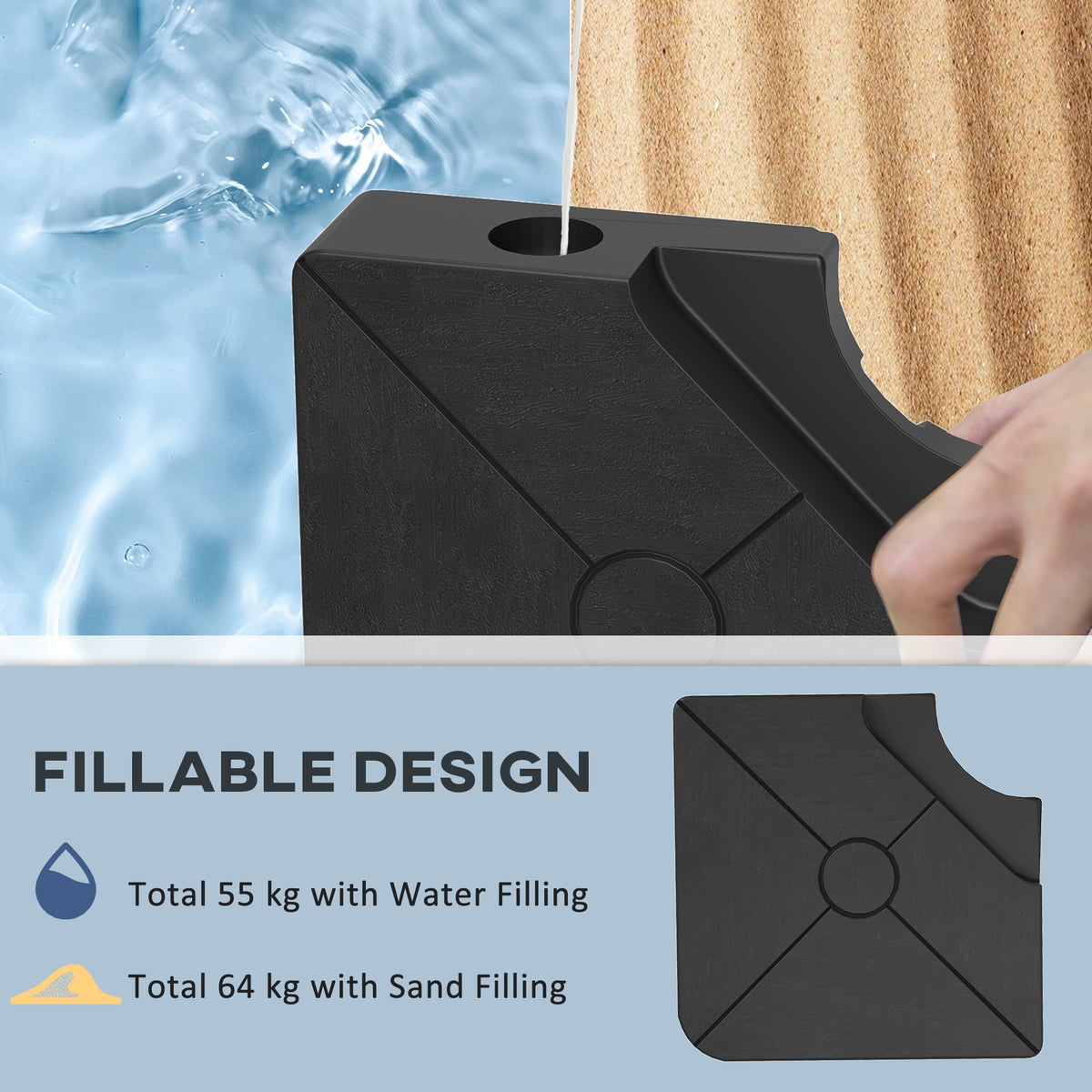 Outsunny Umbrella Weights for Cantilever Parasols, Set of 4 Heavy Duty Parasol Base Weights, 64kg Sand or 55kg Water Filled, Black - Black