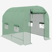 Outsunny Walk-In Garden Polytunnel Greenhouse with Steel Frame, PE Cover, Roll-Up Door and 4 Windows, 2.5 x 2m, Green - Green
