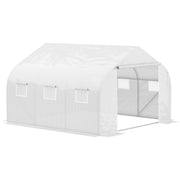 Outsunny Walk-In Polytunnel Greenhouse Warm House Garden Tunnel Shelter Plant Shed with Door and Windows, Galvanised Steel Frame, 4.5 x 3 x 2m, White - White