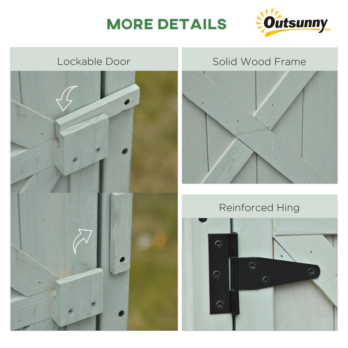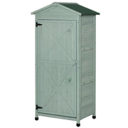 Outsunny Wooden Garden Shed, Outdoor Storage Cabinet with 2 Shelves and Hooks, Locking Organiser Outdoor Narrow Tool House, 74x55x155cm, Green - Green