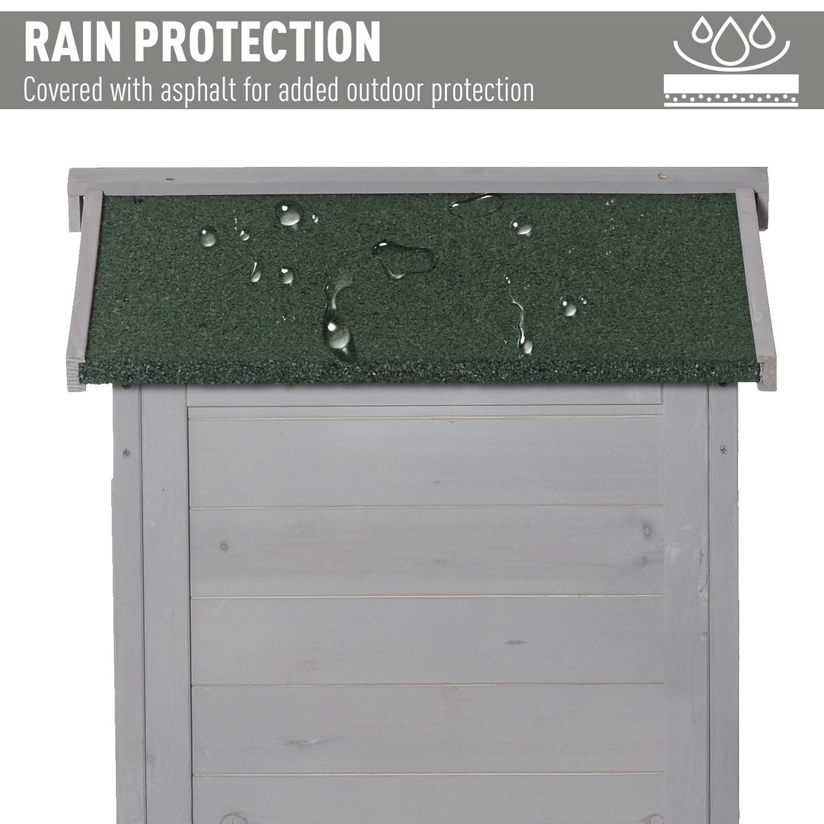 Outsunny Wooden Garden Shed, Outdoor Storage Cabinet with 2 Shelves and Hooks, Locking Organiser Outdoor Narrow Tool House, 74x55x155cm, Grey - Grey