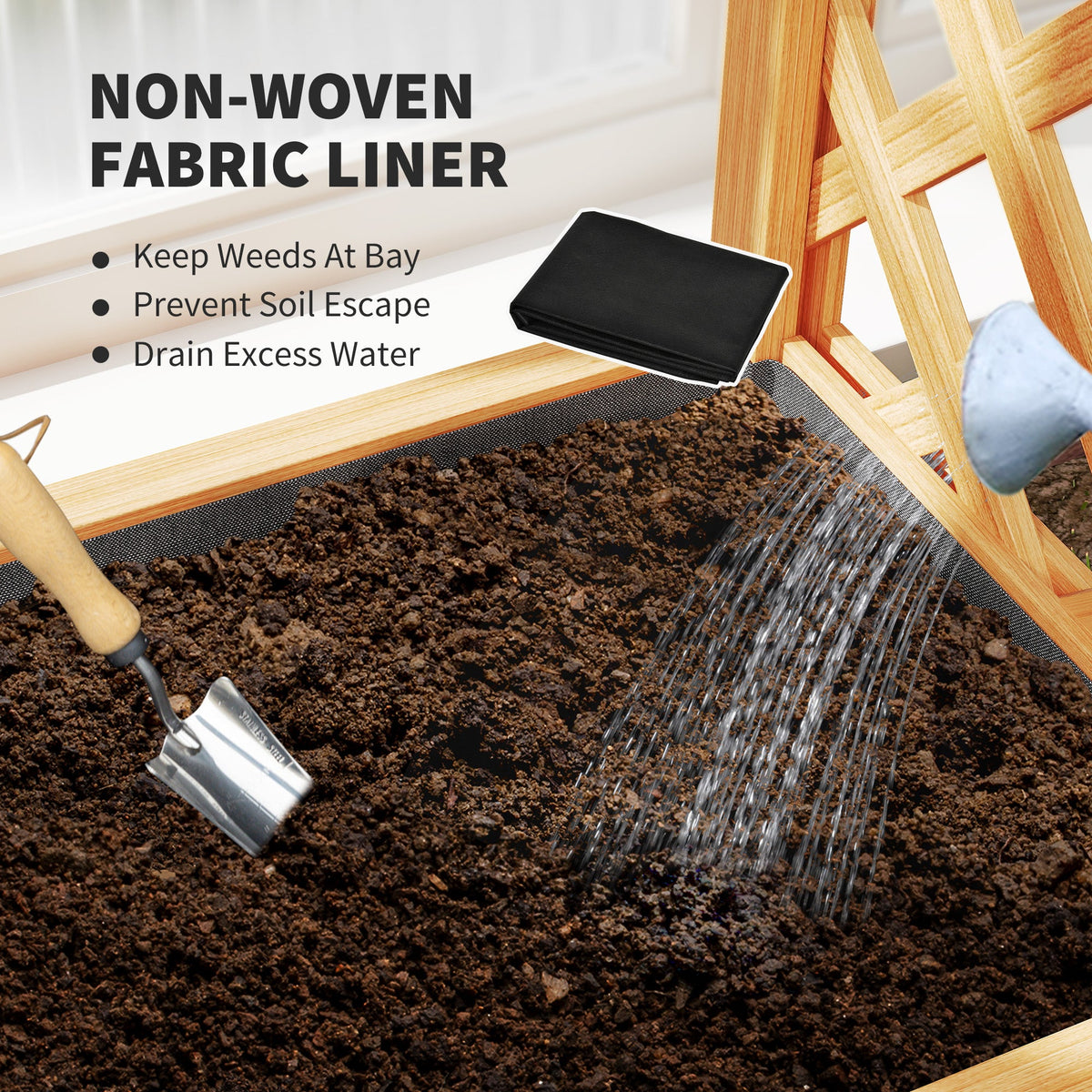 Transform your garden into a blooming haven with the Outsunny vegetable planter! This raised bed features dual drain holes and a fabric liner to enhance root growth and keep weeds at bay. Crafted from natural fir wood with a safe, waterproof coating, it includes side and arch trellises for your climbing plants, making it a charming addition to any patio or balcony.