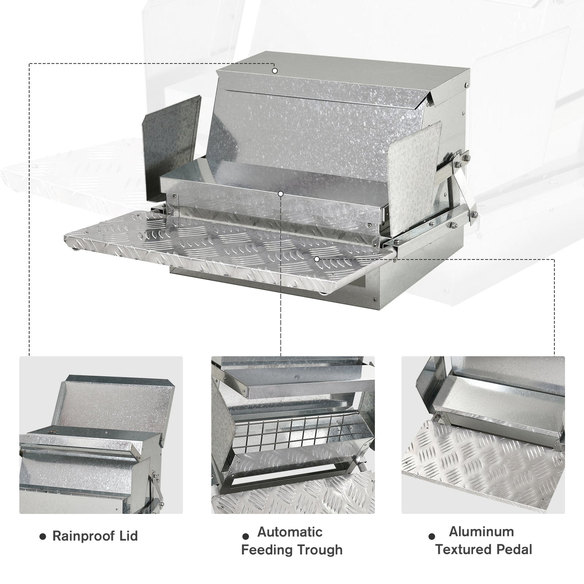 PawHut 11.5KG Automatic Chicken Poultry Feeder Rat Proof Treadle Self Opening with Galvanized Steel and Aluminium - silver