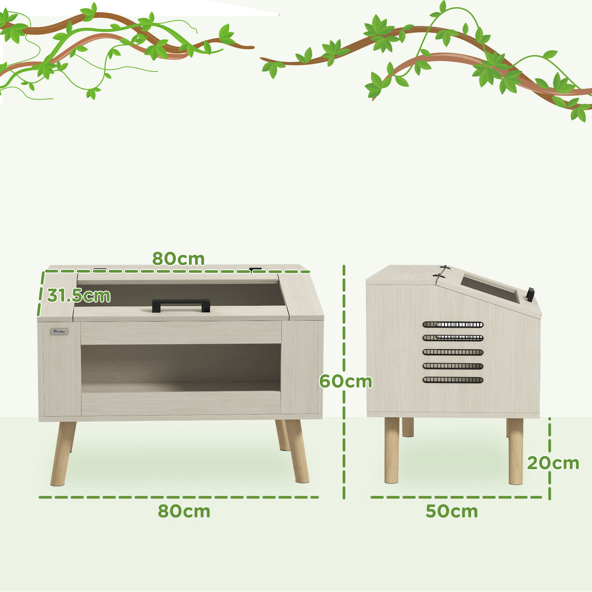 Introducing the stylish PawHut reptile box, a spacious 111-litre haven that's designed for lizards, horned frogs and other reptiles. Watch them settle into their habitat through the openable top and tempered glass windows. 10 vents provide optimal airflow, whilst the bottom has space for a heating pad to adjust the temperature, creating an amazing home for pets to thrive in. Slotting into your home effortlessly, it's a must-have for all reptile owners; watch your pets flourish!