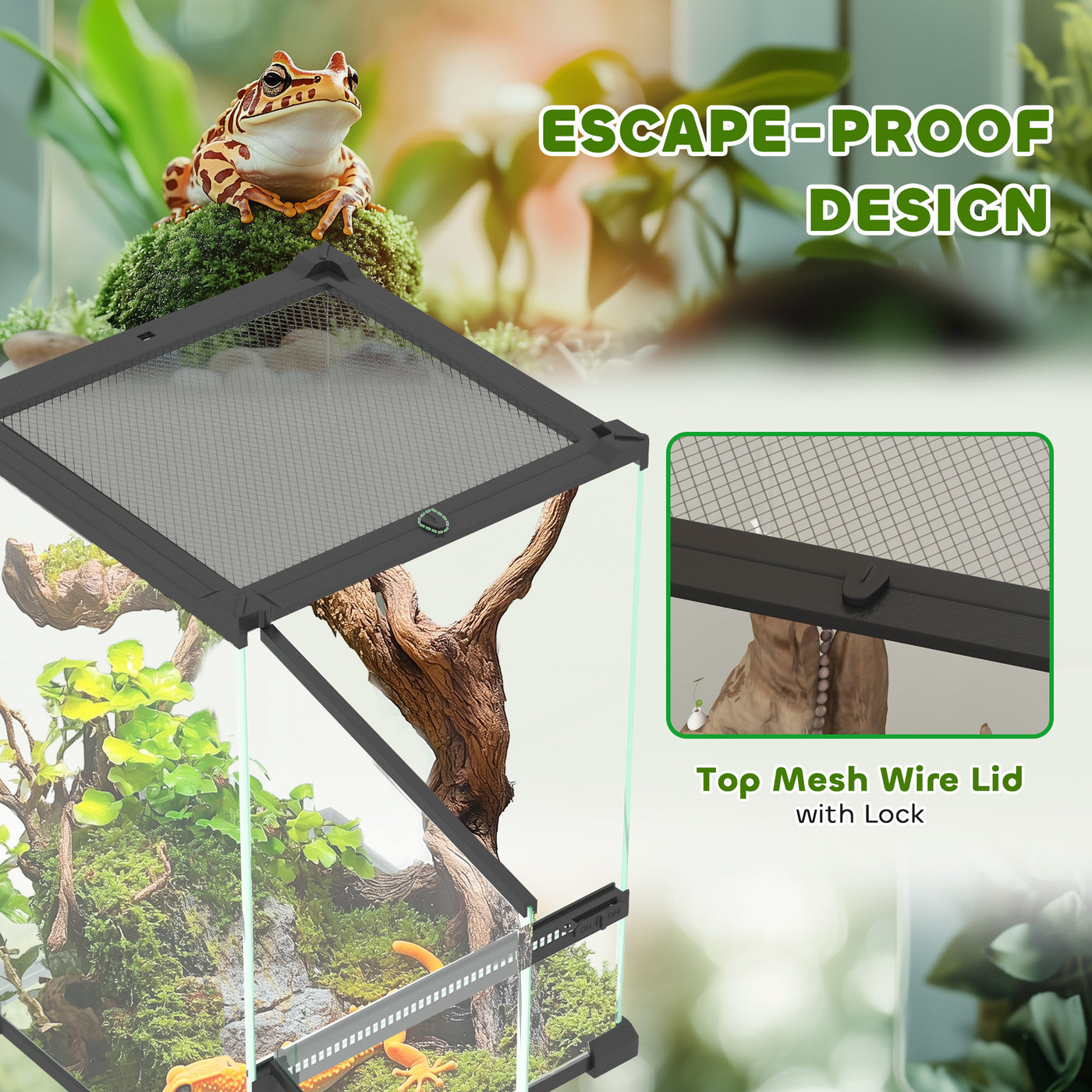 Introducing the PawHut reptile terrarium, making reptile care much easier. It's safe, spacious and well-ventilated, great for lizards, frogs, snakes, turtles and tortoises. With convenient features like easy cleaning, cable management and space for a heating pad, this snake vivarium ensures your reptiles thrive. Finished with a 360° view, you'll watch your reptiles flourish in a wonderful habitat tailored to their needs.