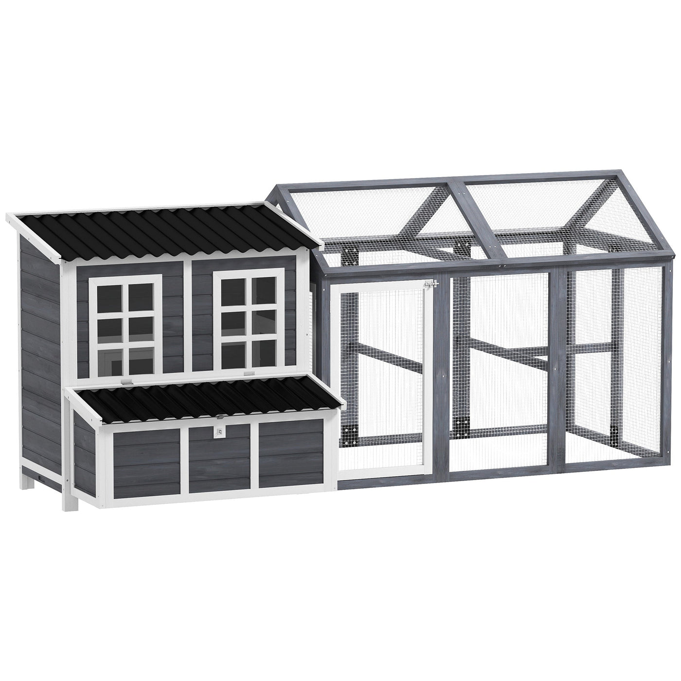 PawHut 2-Piece Wooden Chicken Coop and Run Set, Poultry Run Cage with Nesting Box, Slide-Out Tray, Roof, Perch - Light Grey