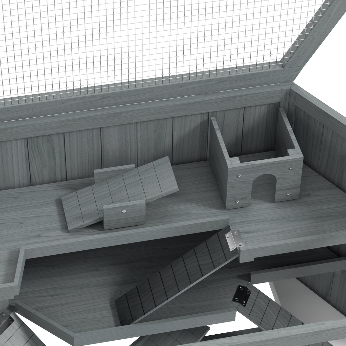 PawHut 3 Tier Wooden Large Hamster Cage with Sliding Tray, Seesaws, Water Bottle, Grey - Grey