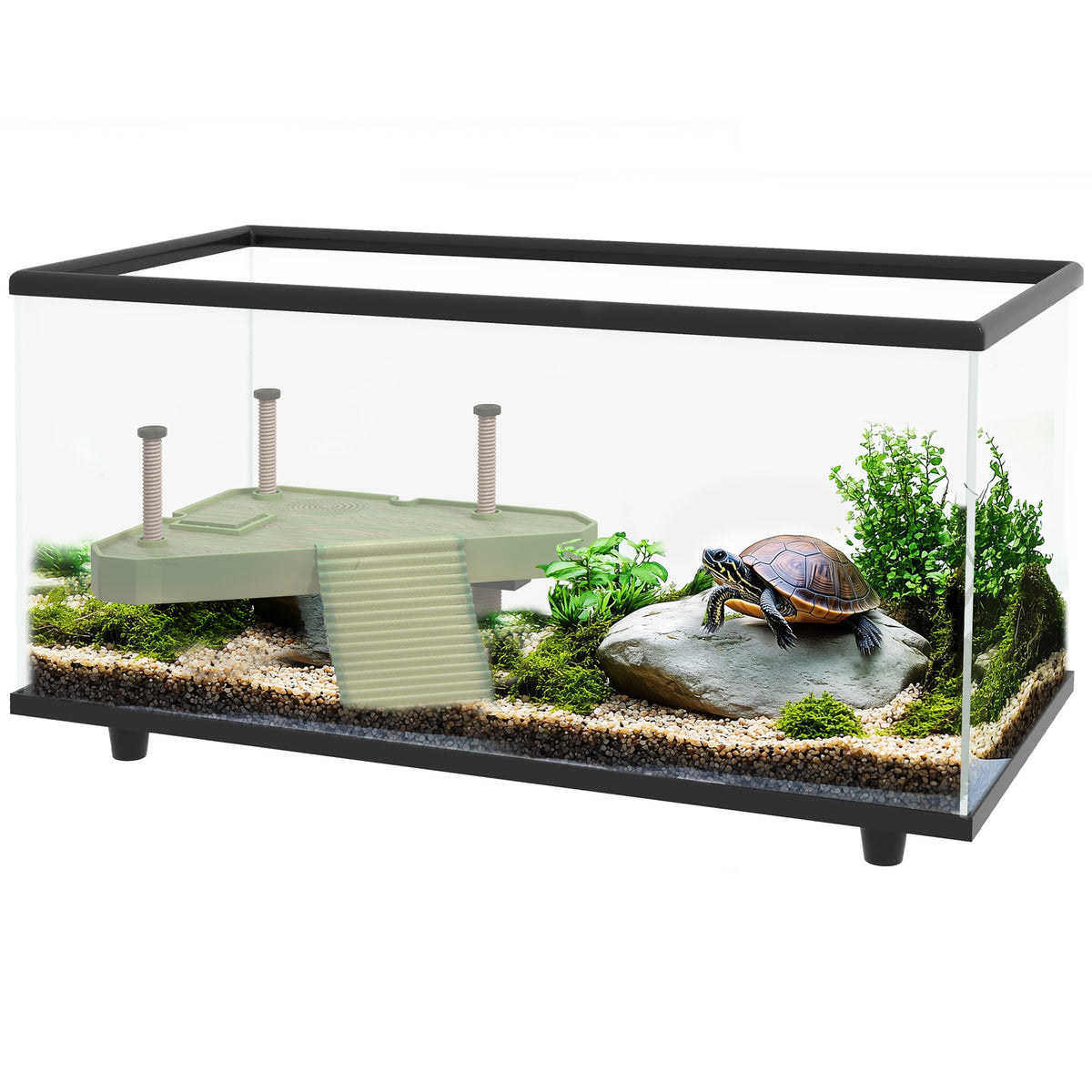 The 50L PawHut turtle tank – a spacious habitat for small turtles under 5cm. It features a basking platform, adjustable temperature between 18-34℃ and a 5mm tempered glass for clear observation. You can add gravel or plants to enhance their surroundings for them to feel extra comfortable. A must-have for small turtle owners, it's a great home for pets to thrive and flourish.
