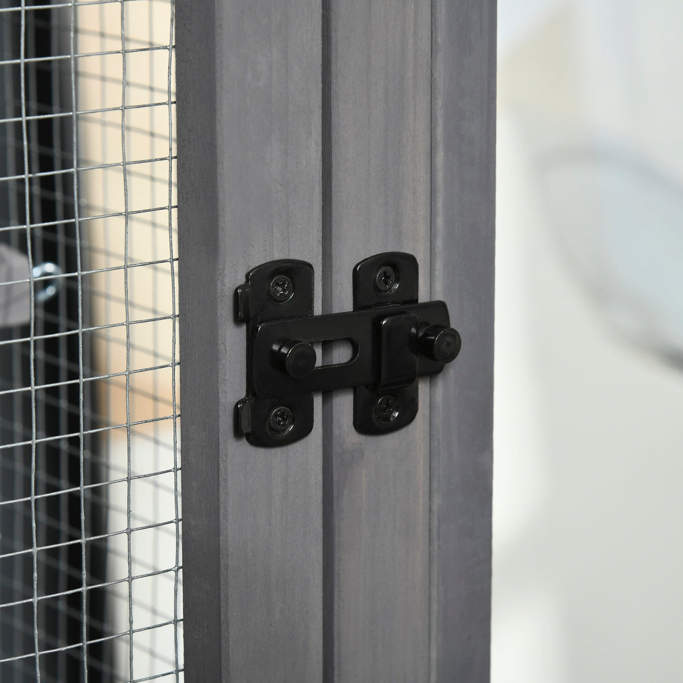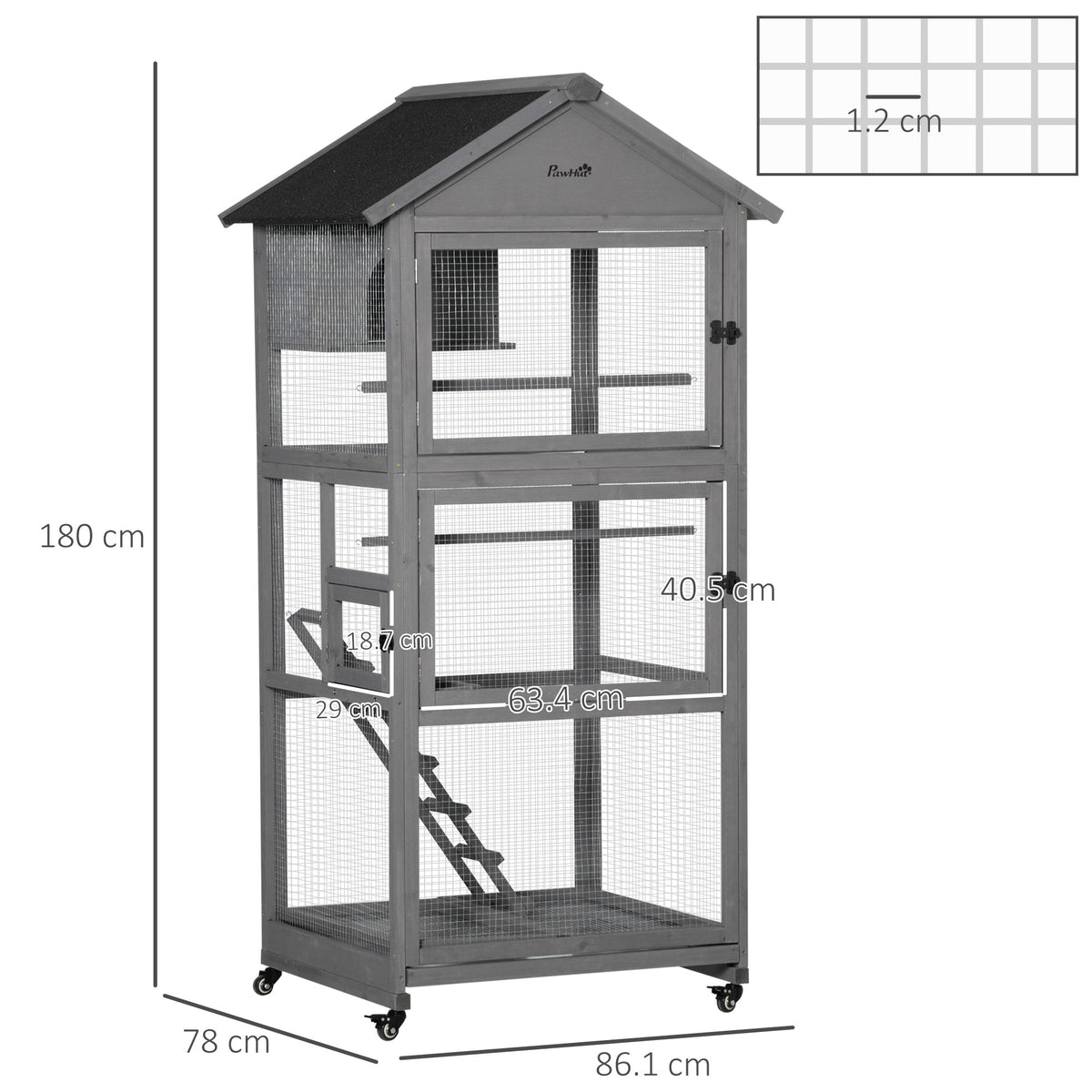 PawHut Bird Cage budgie cage Wooden Outdoor Aviary with Wheels for Canary Finch with Asphalt Roof Perch Nest Ladder Slide-out Tray, Grey - Dark Grey