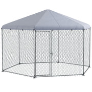 Add this spacious PawHut chicken coop to your outdoor space, creating a secure habitat for up to 15 chickens. It's large enough for you to walk inside, so you can maintain their area and keep them well fed without fuss. Its hexagonal roof provides shelter and shade, ensuring pets stay cool and dry without water buildup. Crafted with dipped mesh wire and galvanised steel, it offers protection from predators, whilst ensuring optimal airflow. You can relax, knowing pets are safe and secure.