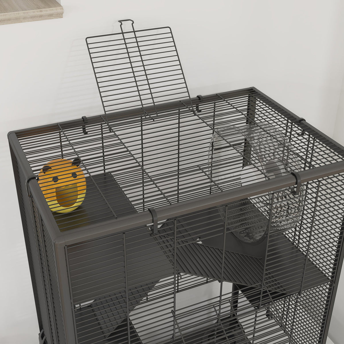 PawHut Four-Tier Hamster Cage with Deep Tempered Glass Bottom, Hut, Running Wheel, Food Dish, Water Bottle, 60 x 40 x 80cm - Black