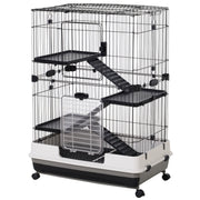 PawHut Four-Tier Small Animal Cage, for Bunnies, Ferrets, Chinchillas w/ Wheels, Tray - Black - Black