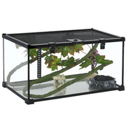 PawHut Glass Reptile Terrarium with Decor Kit, Breeding Tank with Thermometer for Small Animals, 50 x 30 x 25cm, Heated - Black - Black