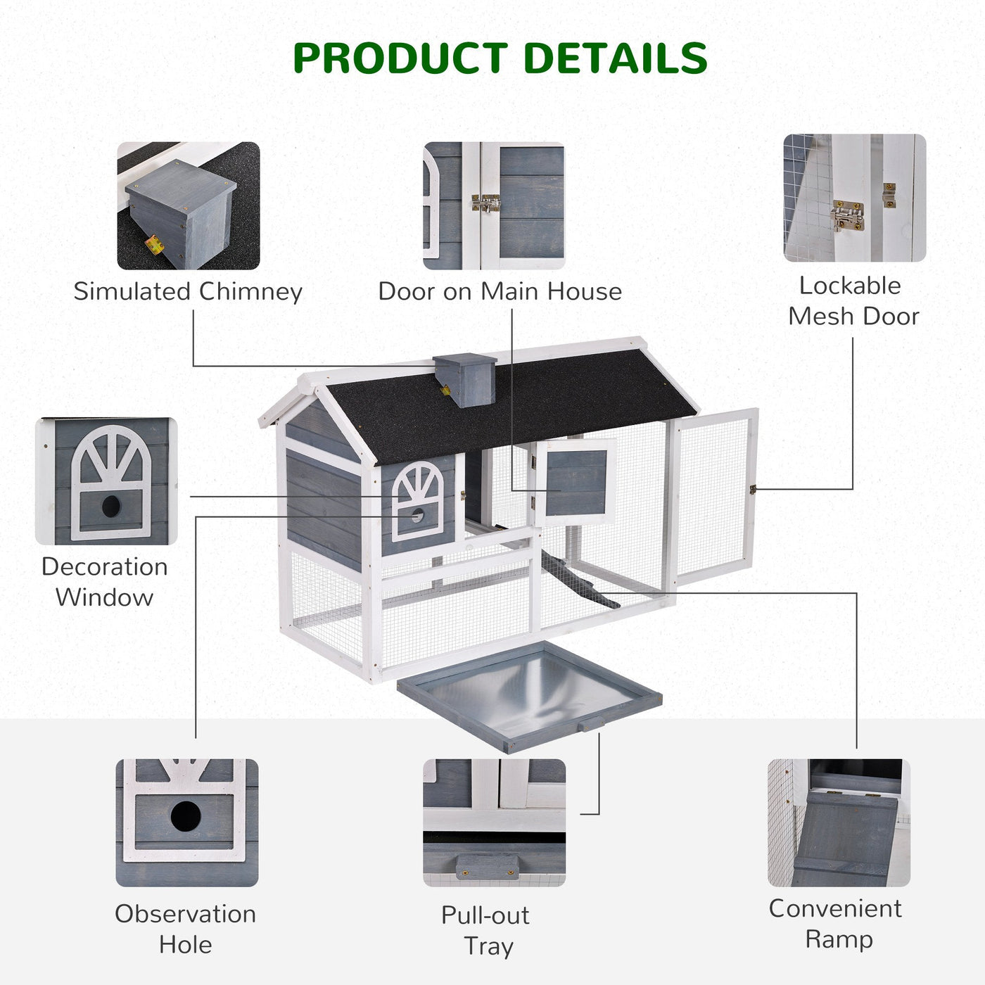 PawHut Guinea Pigs Hutches Wood Bunny Cage for Outdoor Indoor w/ Pull Out Tray Run Box Ramp - Natural Wood, Grey, White