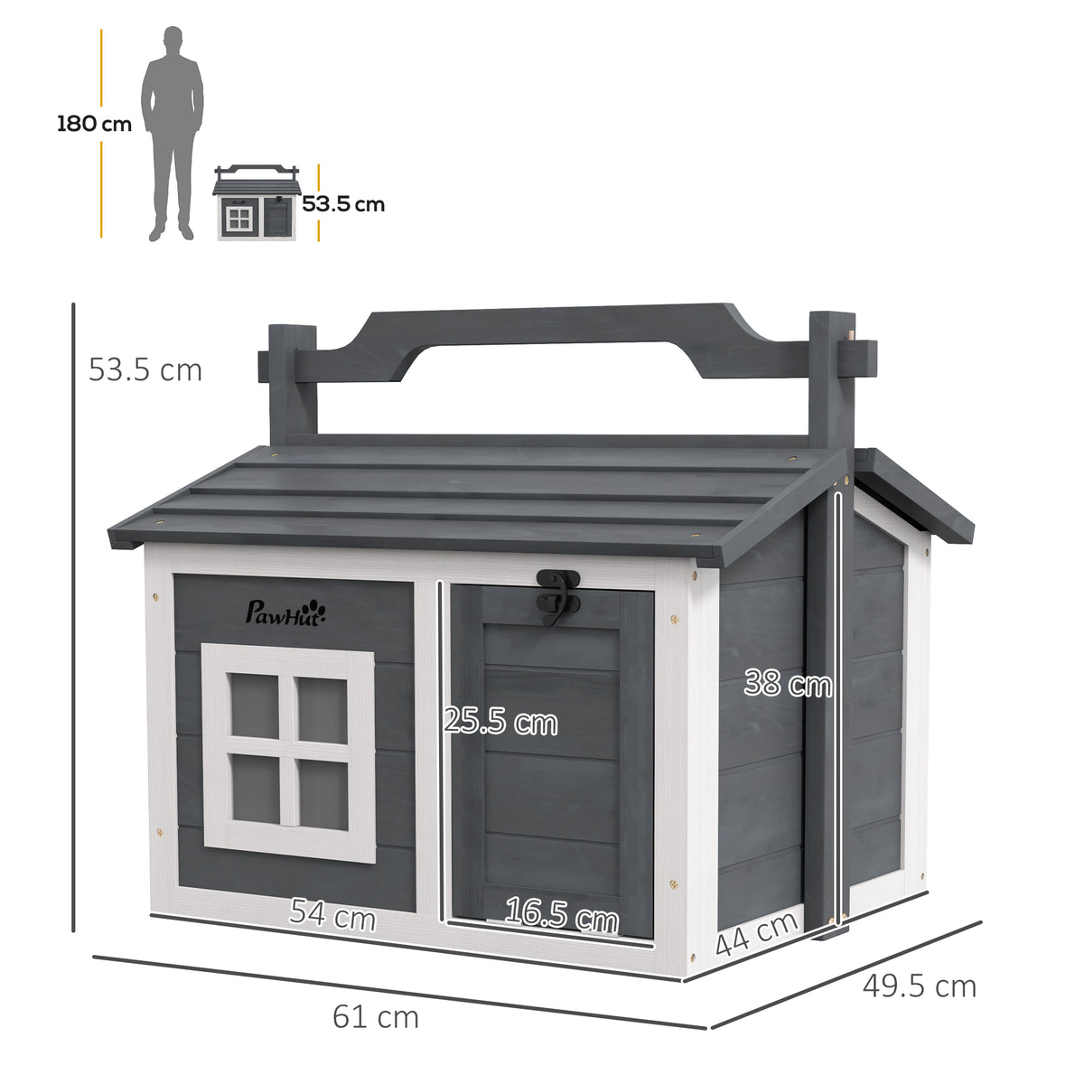PawHut Indoor Rabbit Hutch, Portable Small Animal House Outdoor, with Top Handle, Openable Roof - Grey - Light Grey