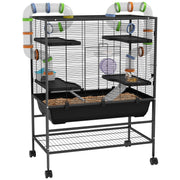 A wonderful home for small pets, this spacious PawHut large hamster cage includes tubes for roaming, a running wheel for exercise, two ramps, four platforms and a cosy hut for relaxing in – a space to do it all. When hungry or thirsty, they'll have a water bottle and food container accessible to them, ensuring they never go without. Adventure, comfort and entertainment – the qualities your pets will enjoy when inside their superb retreat.