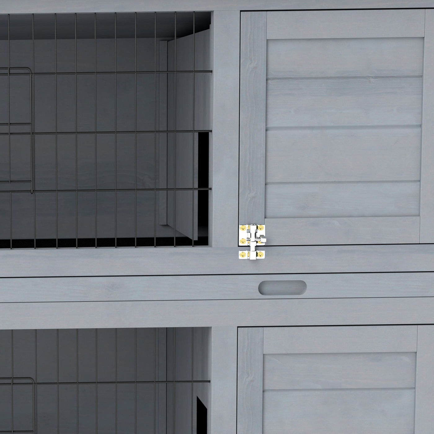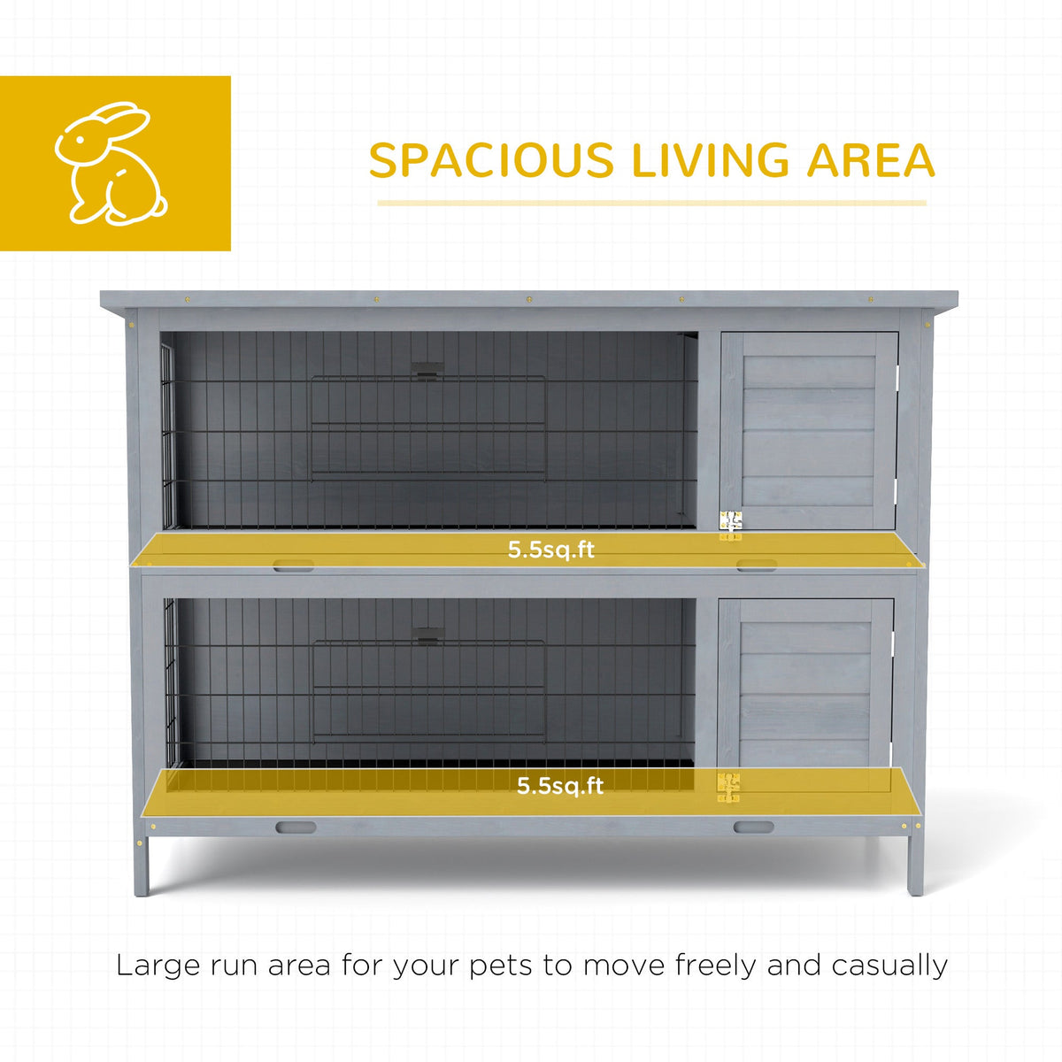 PawHut Rabbit Hutch Outdoor Guinea Pig Hutch Bunny Cage with No-Leak Trays, Divider, 136 x 50 x 93cm, Grey - Grey