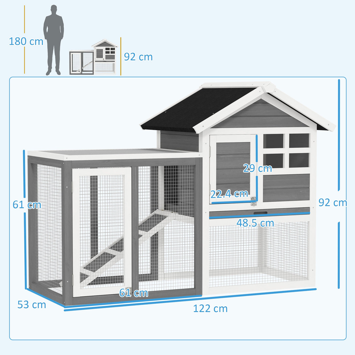 PawHut Rabbit Hutch Outdoor Wooden Guinea Pig Hutch Rabbit Run Bunny Cage Small Animal House Pull-Out Tray, Grey, 122 x 62.6 x 92 cm - Grey and White