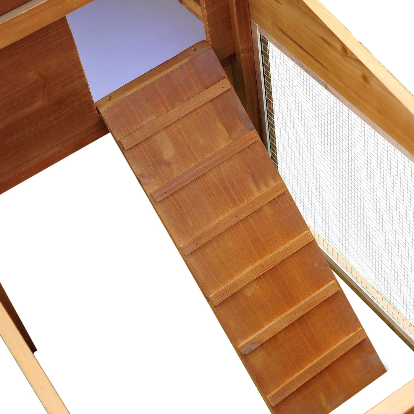 Give your small pet only the best with this deluxe rabbit hutch from PawHut. Over two levels, it features a spacious living room on the top and a wide and long run area on the bottom, with a ramp connecting the two together for them to move in and out safely. Using fir wood for a strong frame, with a water-resistant top coat to handle mild-weather damage, it is made with two locking doors and a pull-out tray for easy access to clean and replace food and bedding. Wire fencing surrounds the run to protect your rabbit from any predators, and it is finished with a tilted roof with asphalt to prevent water from seeping inside.