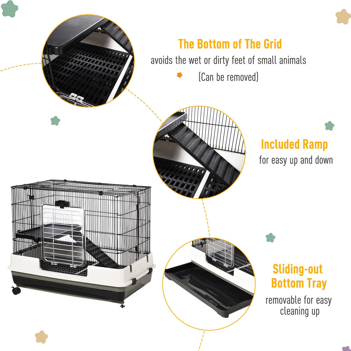 PawHut Small Animal Guinea Pigs Hutches Steel Wire Rabbit Cage Pet Play House W/ Waste Tray Black - Black, Grey, White