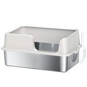 PawHut Stainless Steel Litter Box with Detachable Rim, Scoop, Easy Cleaning, Odour-Resistant, 60 x 40 x 28 cm - Light Grey