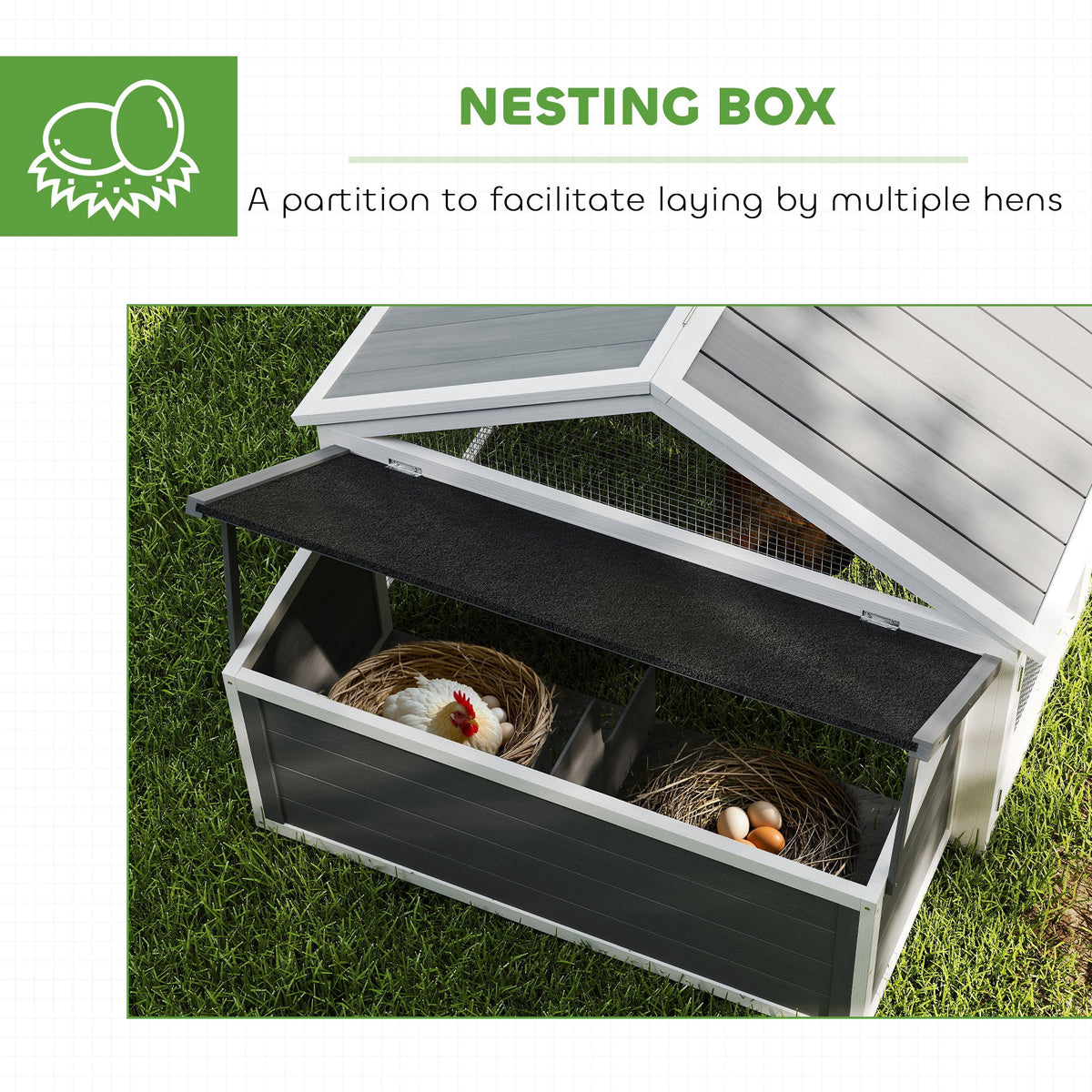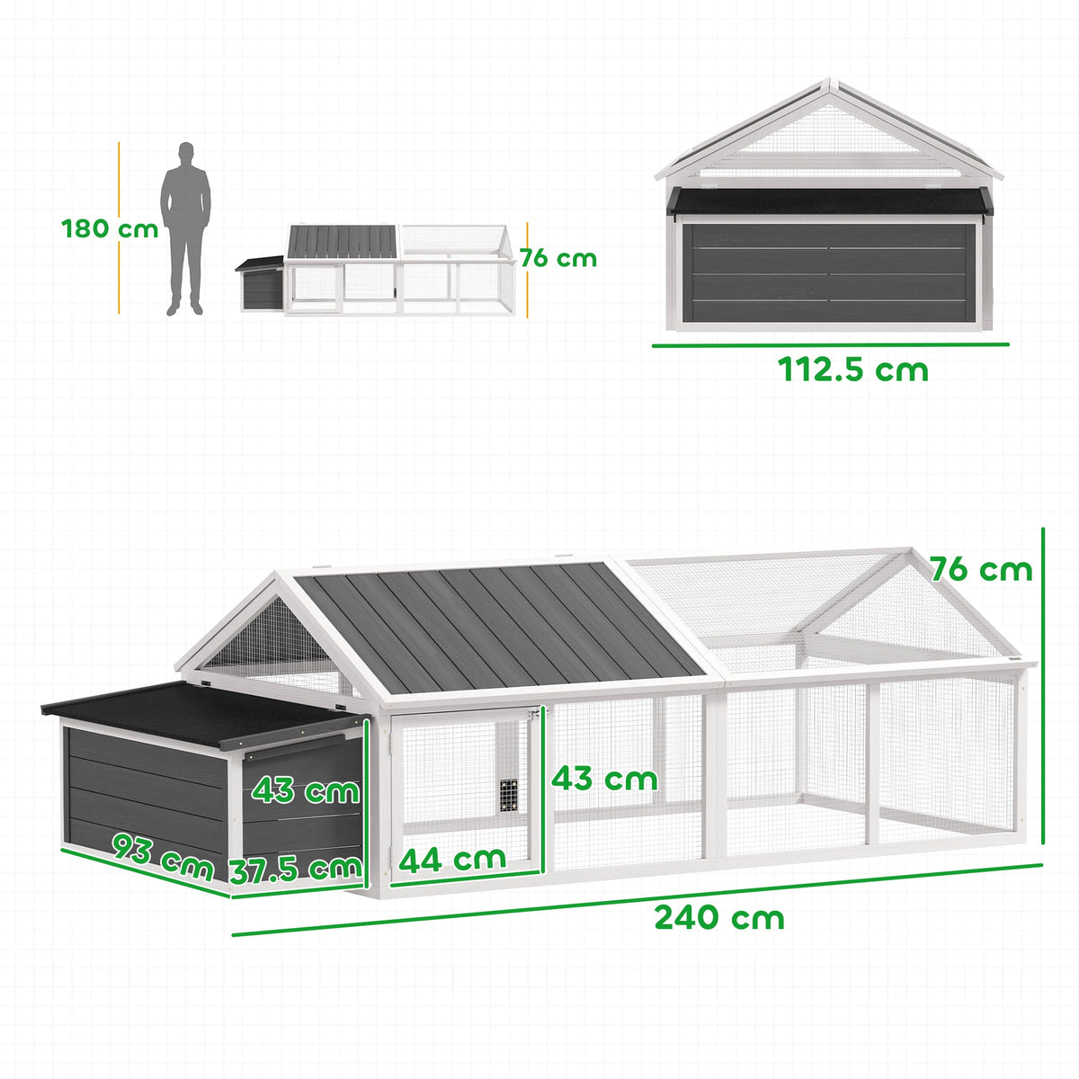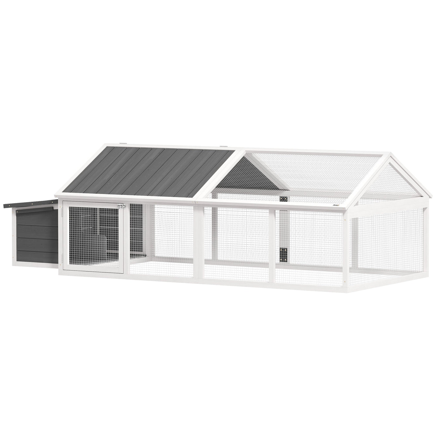 This PawHut pet coop is a safe and wonderful home for small pets. Promoting security and comfort, up to eight small animals will roam freely together – the wire mesh surrounding the coop keeps them safely inside. It features a large door and an openable roof for easy feeding and cleaning. A versatile option, you can attach it to another animal coop, so you can add even more pets if needed.
