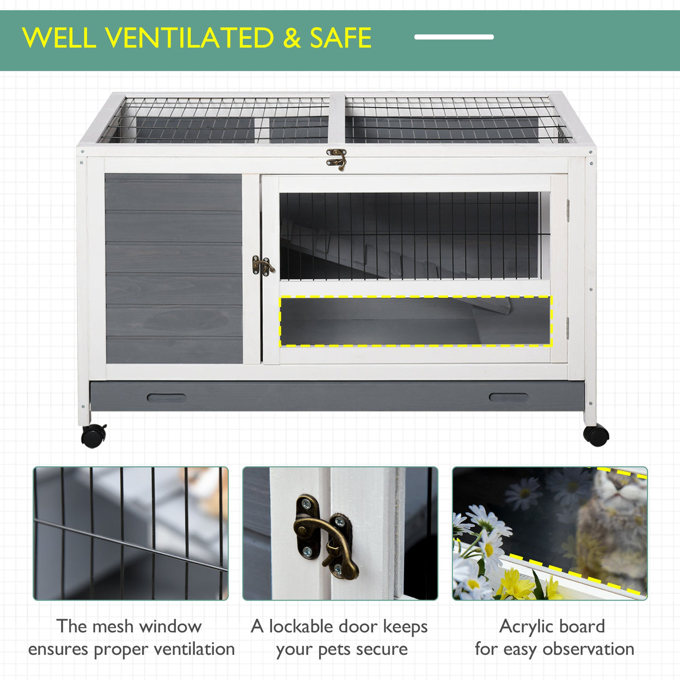 PawHut Wooden Guinea Pigs Hutches Elevated Pet Bunny House Rabbit Cage with Slide-Out Tray Indoor Grey - White, Grey
