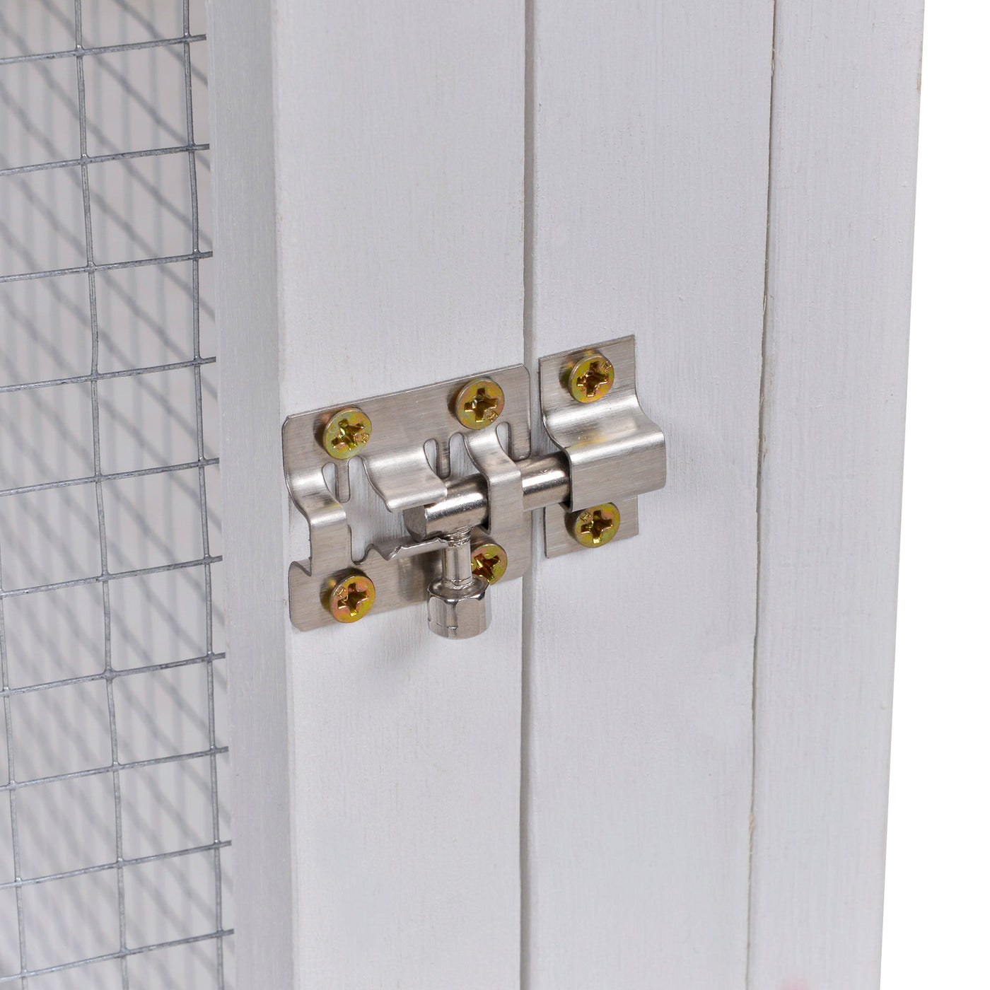 This outdoor rabbit hutch from PawHut is great for use with rabbits, guinea pigs and similar sized animals. It gives a mix of living space - the upper house offers them a private area, whilst the lower area gives them open space for free movement. Lockable doors and the slide-out tray provide easy access for cleaning, feeding and other tasks. Finished with an asphalt roof to keep inside dry from light-medium rain.