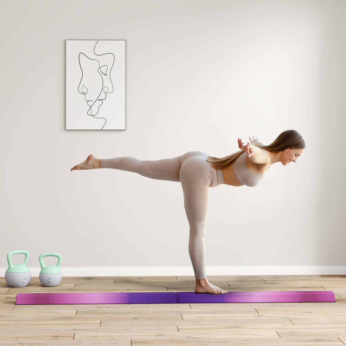 SPORTNOW 7.7ft Folding Gymnastics Beam, Floor Balance Beam for Kids with Anti-Slip Base, Gymnastics Equipment for Home, Purple - Purple, Pink