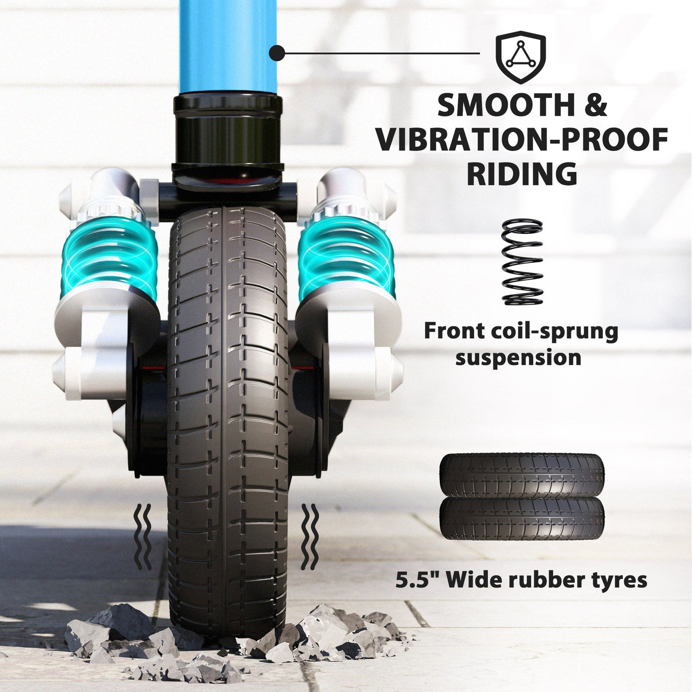 SPORTNOW Folding Electric Scooter for Kids, with Dual Brakes, Front Suspension, LED Colourful Lights, Blue - Blue