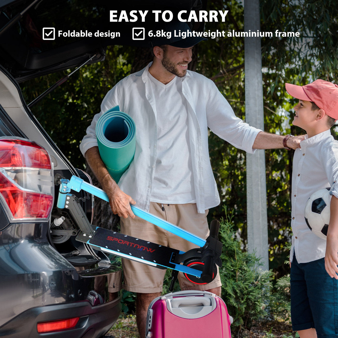 Scootering just got cooler with the SPORTNOW e-scooter! Great for ages 6–14 years, it reaches up to 14km/h and covers 6km on a three-hour charge. The soft start feature prevents sudden jolts, while dual brakes offer safe stops. Lightweight and foldable with an aluminium frame, it's easy to carry and store. An LED display shows speed and battery level, while the vibrant bottom light bar adds fun and visibility. Ready to ride?