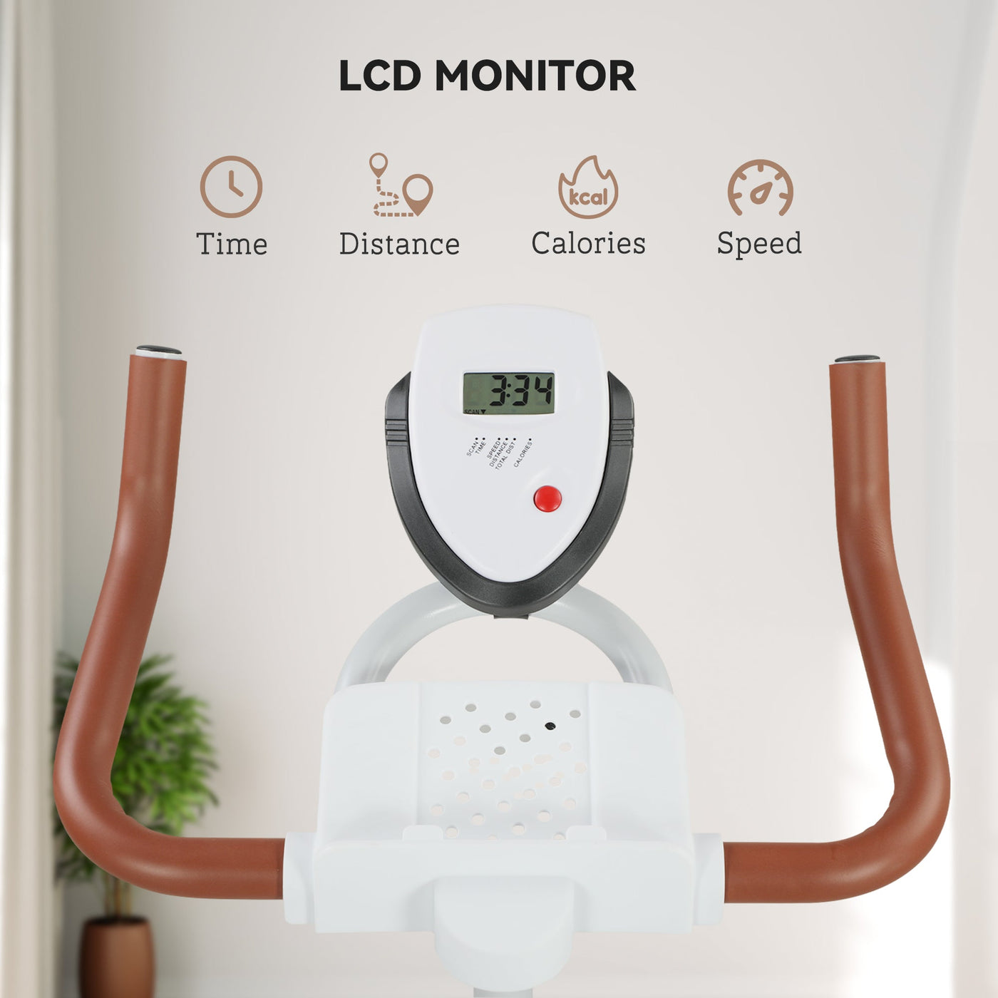 SPORTNOW Quiet Stationary Exercise Bike with Adjustable Resistance, Seat, White - White