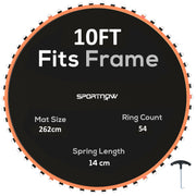 Tired of constantly replacing your trampoline mat? This SPORTNOW mat is your solution. With eight rows of heavy stitching for durability, its water-resistant PP material is easy to clean and maintain. With 54 V-rings included, it's suitable for a 10ft round trampoline using 14cm springs. Ensure a proper fit by measuring your trampoline frame, counting the number of springs and measuring the length of unstretched springs. Get ready for bigger and better jumps with this resilient mat.