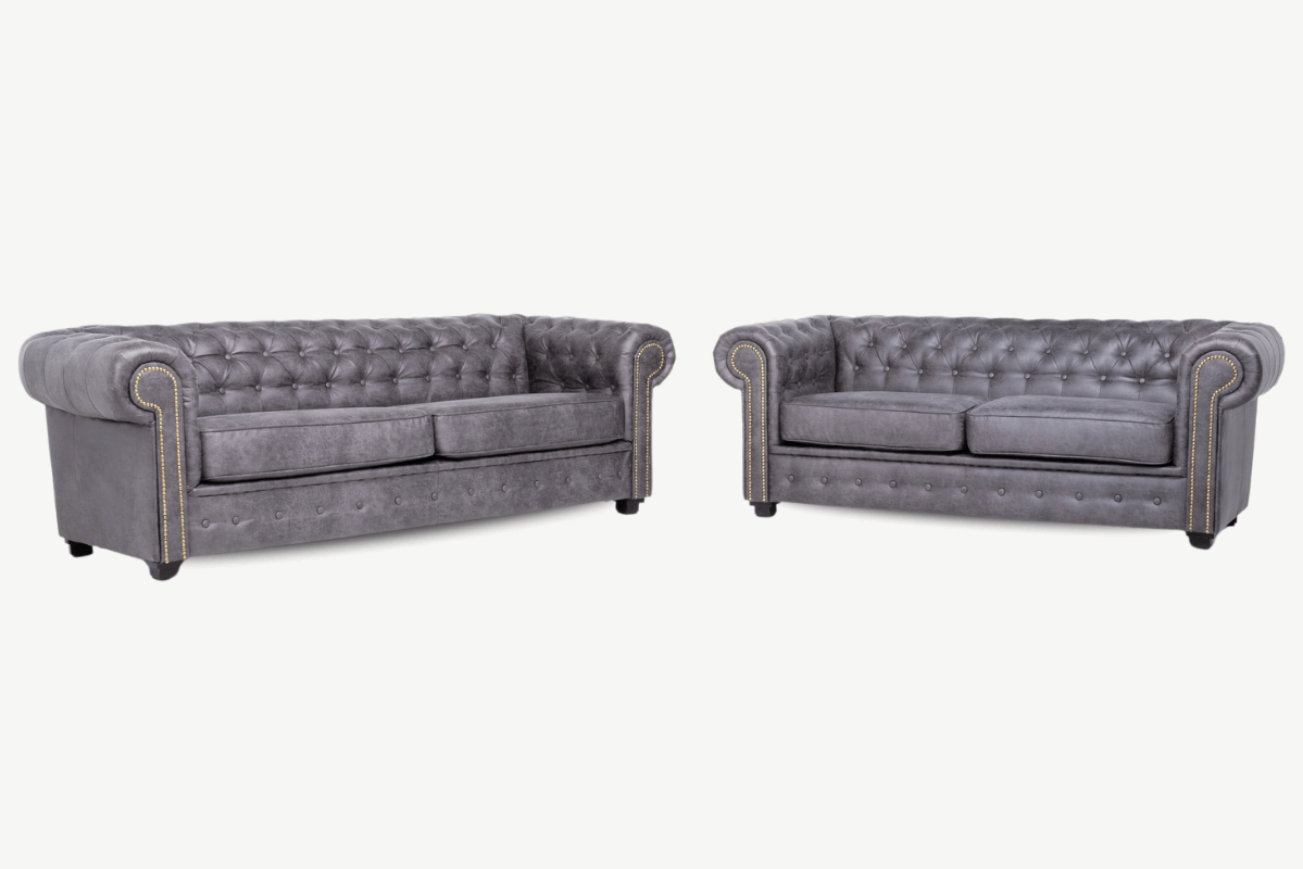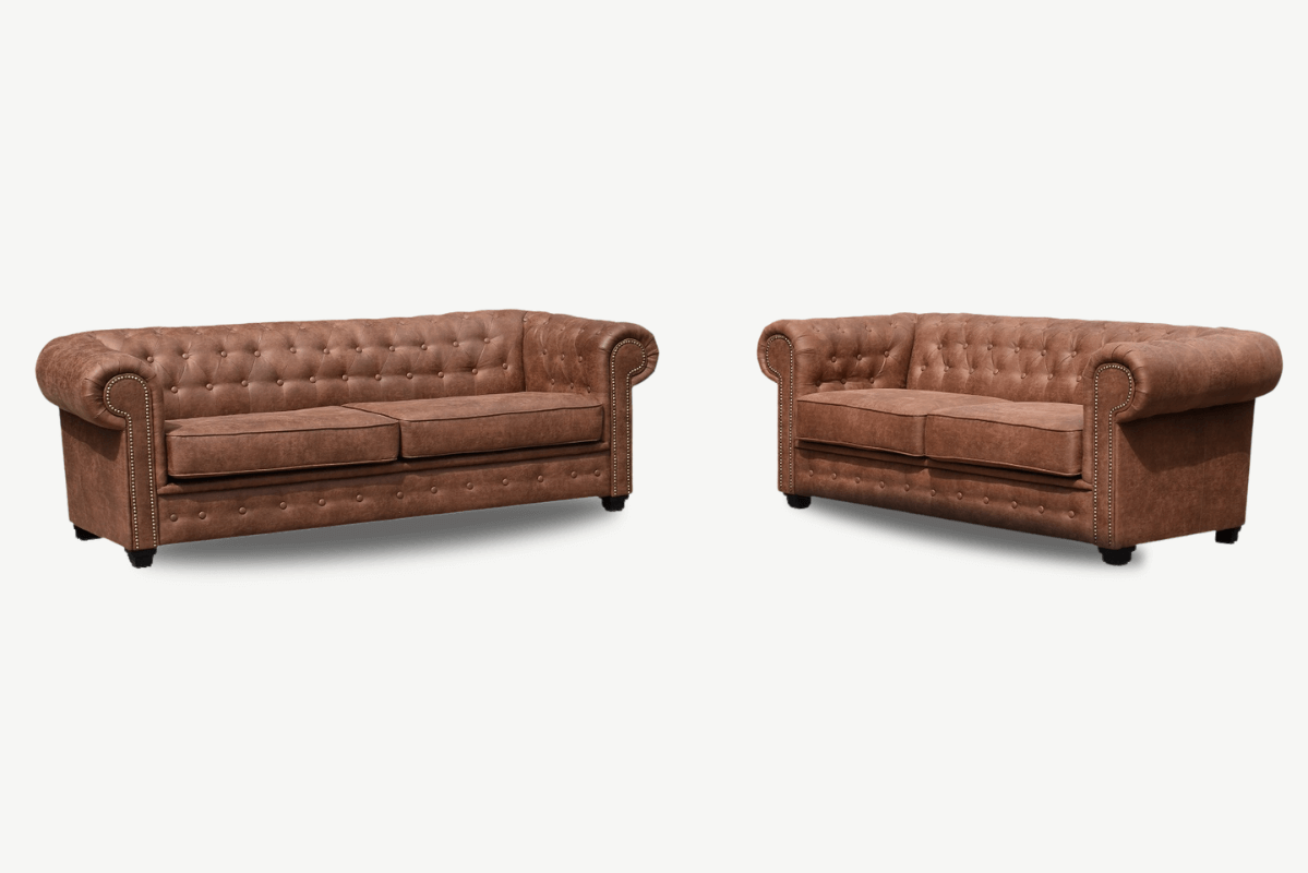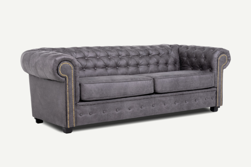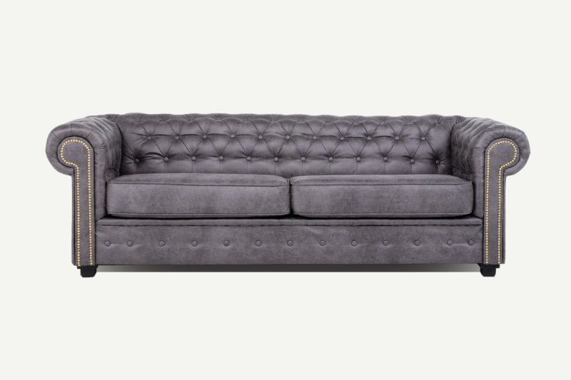 Nothing screams sophistication unless we speak about Asher! Its soft Arizona fabric, adds an elegant and luxurious touch to any living room. With soft to the touch upholstery available in two colours brown and grey, this sofa features golden studding details along with sturdy wooden feet to add the perfect finishing touch.The foam-filled seat and back cushions are making it as relaxing and comfortable as it is stylish.