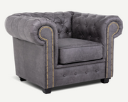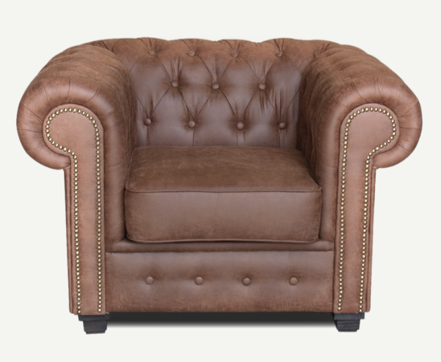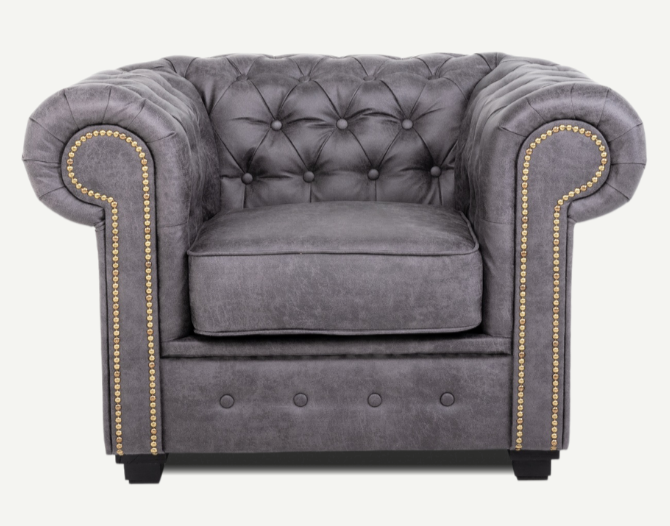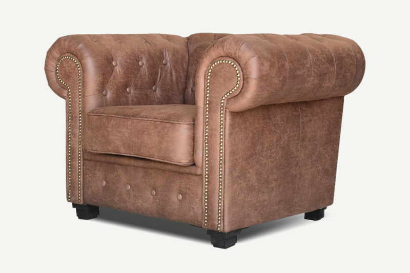 Nothing screams sophistication unless we speak about Asher armchair! Its soft Arizona fabric, adds an elegant and luxurious touch to any living room. With soft to the touch upholstery available in two colours brown and grey, this sofa features golden studding details along with sturdy wooden feet to add the perfect finishing touch.The foam-filled seat and back cushions are making it as relaxing and comfortable as it is stylish.