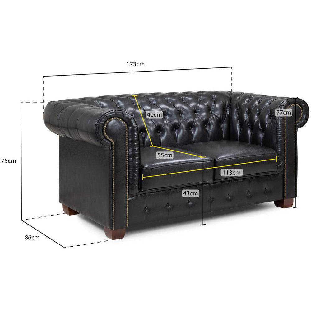 Chesterfield 2 Seater Leather Sofa - Antique Brown