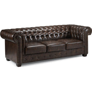 Chesterfield 3 Seater Leather Sofa - Antique Brown